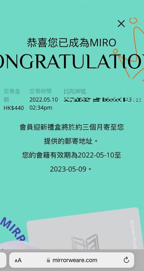 付款之後,MIRO會收到確認Email。