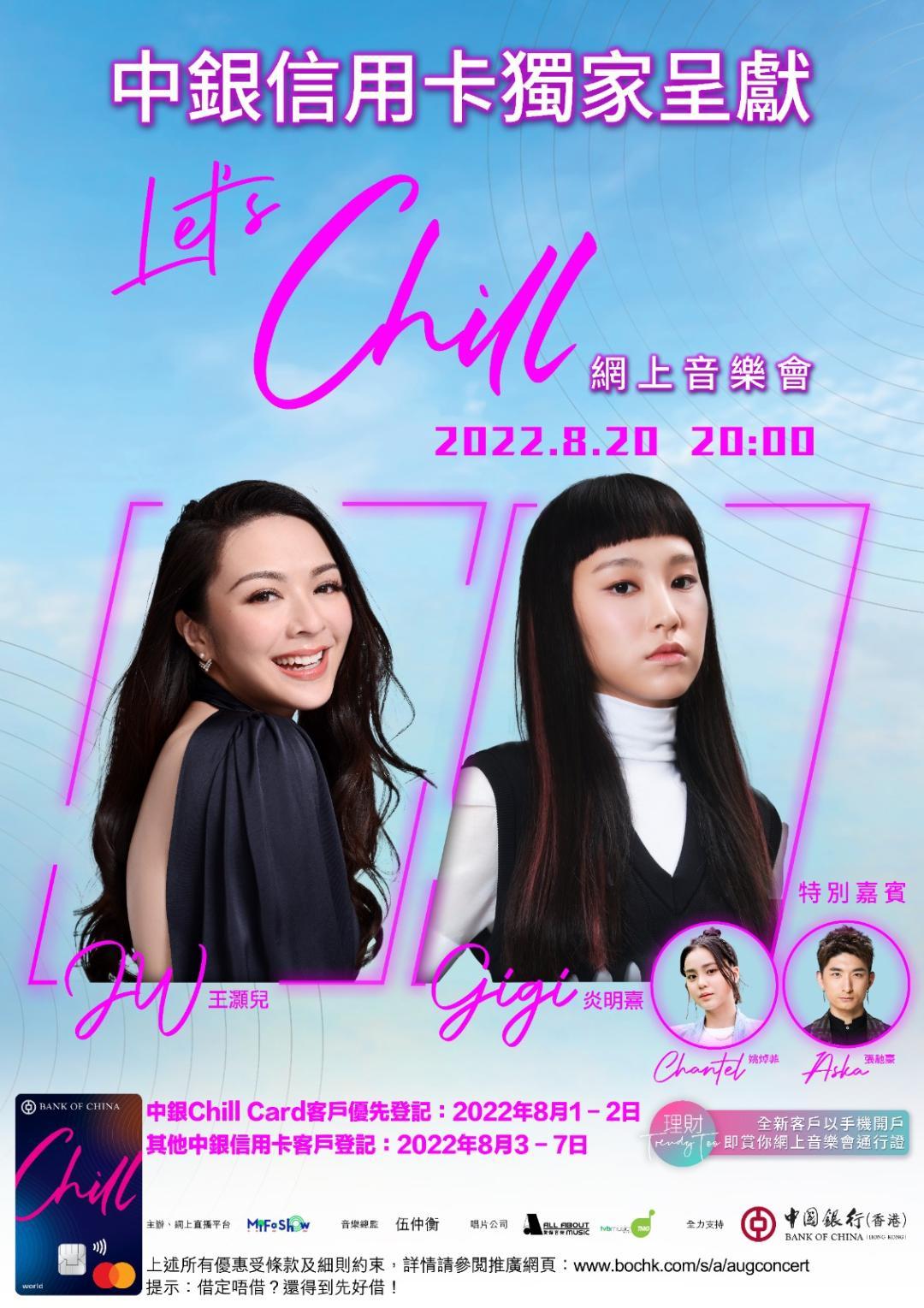 JW笑言:「呢排天氣炎熱到大家都唔想出街,最啱留在屋企開著冷氣聽我哋唱歌,都係一種享受,仲可以同我哋一齊Chill一晚。」Gigi開心表示:「好期待8月20日,可以同JW老師首次合作開網上直播音樂會,大家生活都好緊張,希望我哋歌聲可以令大家放慢一晚步伐,與家人、朋友一齊好輕鬆開心咁聽下歌,享受一下音樂。」