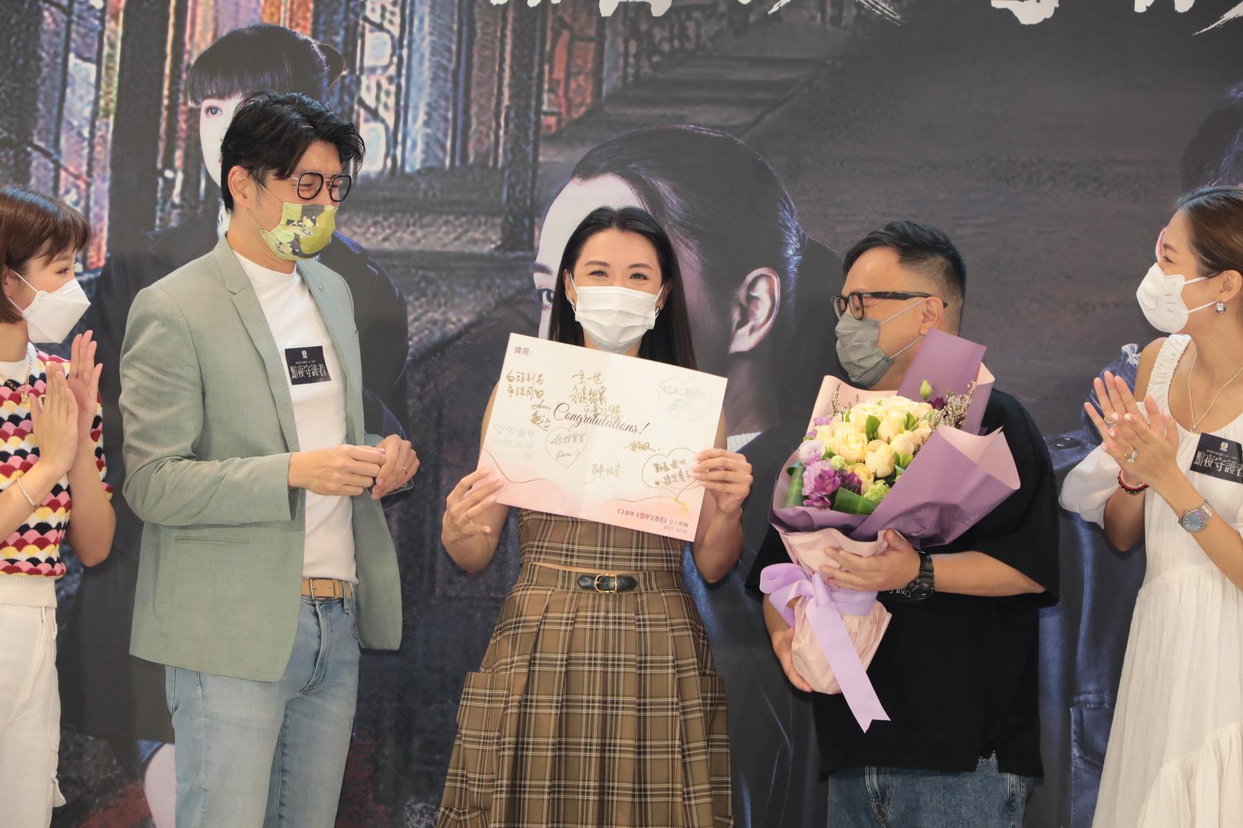 陳煒、陳敏之及江嘉敏今日到荃灣宣傳無綫劇集《黯夜守護者》,在活動尾聲時,監製代表劇組向月底結婚的煒哥,送上簽滿名的心意卡和鮮花,令她感動到眼濕濕。