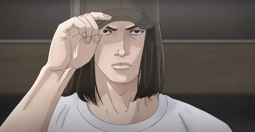 成為不良少年的三井壽,原來一直沒有忘記湘北籃球隊,還偷偷跑去看湘北籃球隊的比賽。(《The First Slam Dunk》預告片截圖)