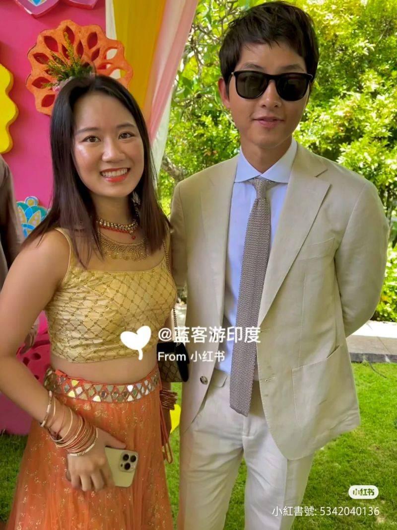 宋仲基與妻子凱蒂甜蜜同遊。(圖/翻攝自微博)