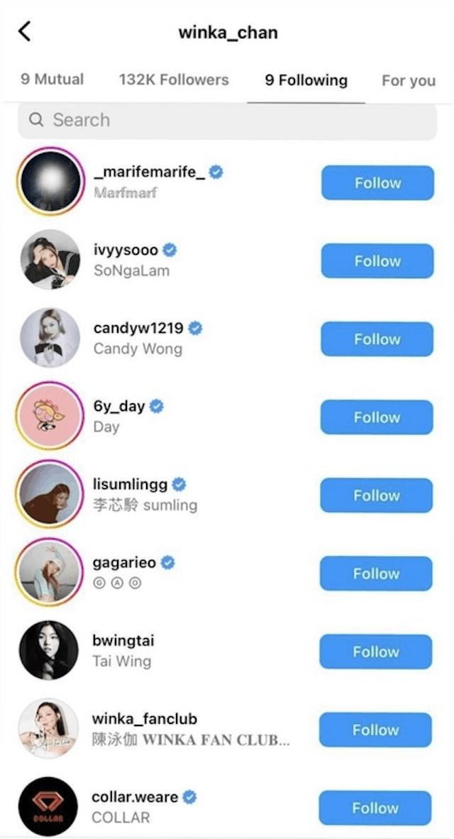 Winka現時IG的追蹤名單清零。
