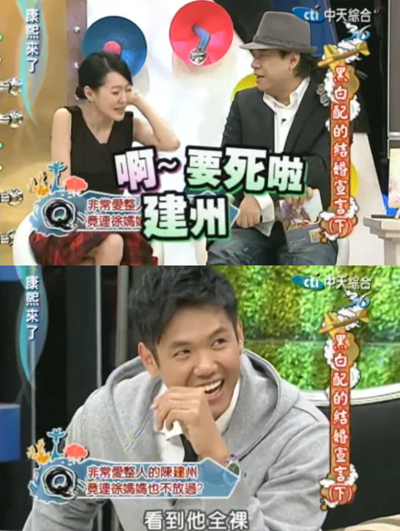 范瑋琪在節目中也提到,陳建州以前練完球很愛去小S家洗澡,接著小S直言當時「陳建州變態的勁又來了。」表示徐媽媽當時在煮菜,剛洗完澡的陳建州一絲不掛地用傘擋住「重要部位」,然後走到徐媽媽身後,待對方轉頭時,他就將傘移開,嚇得徐媽媽大喊:「啊!要死啦!建州!」一旁的蔡康永聽完這段故事則疑惑表示:「為甚麼可以對別人做這麼多下流的事,但對范范都不會?」