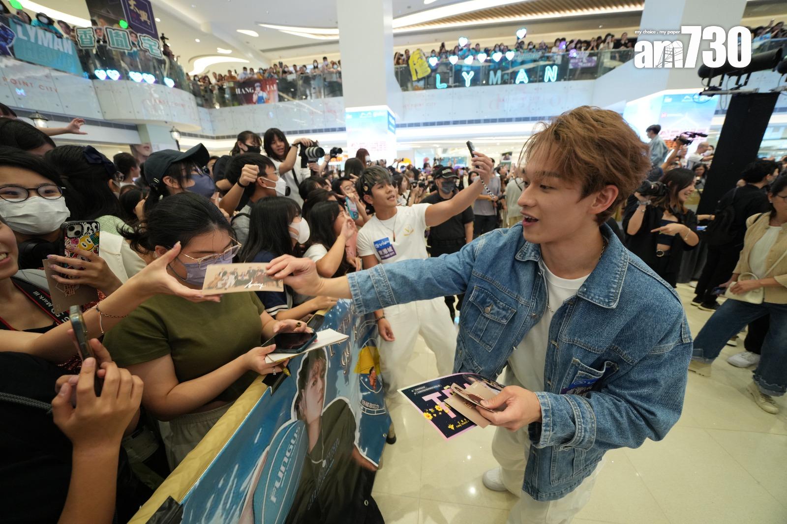 殺入《全民造星V》10強的王鋒、Nathan、Tsoul現身將軍澳東港城與觀眾見面。  (陳奕釗攝)