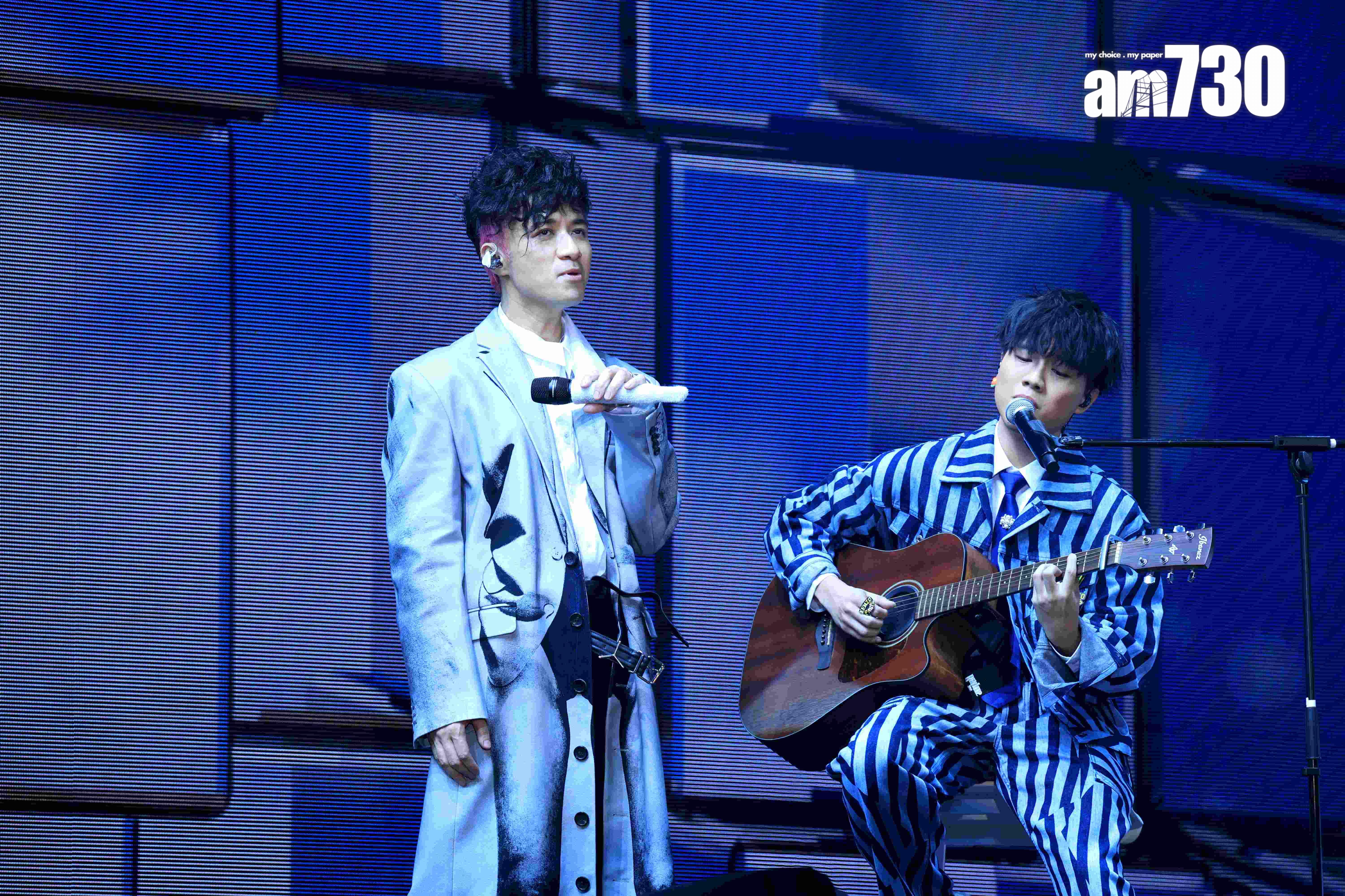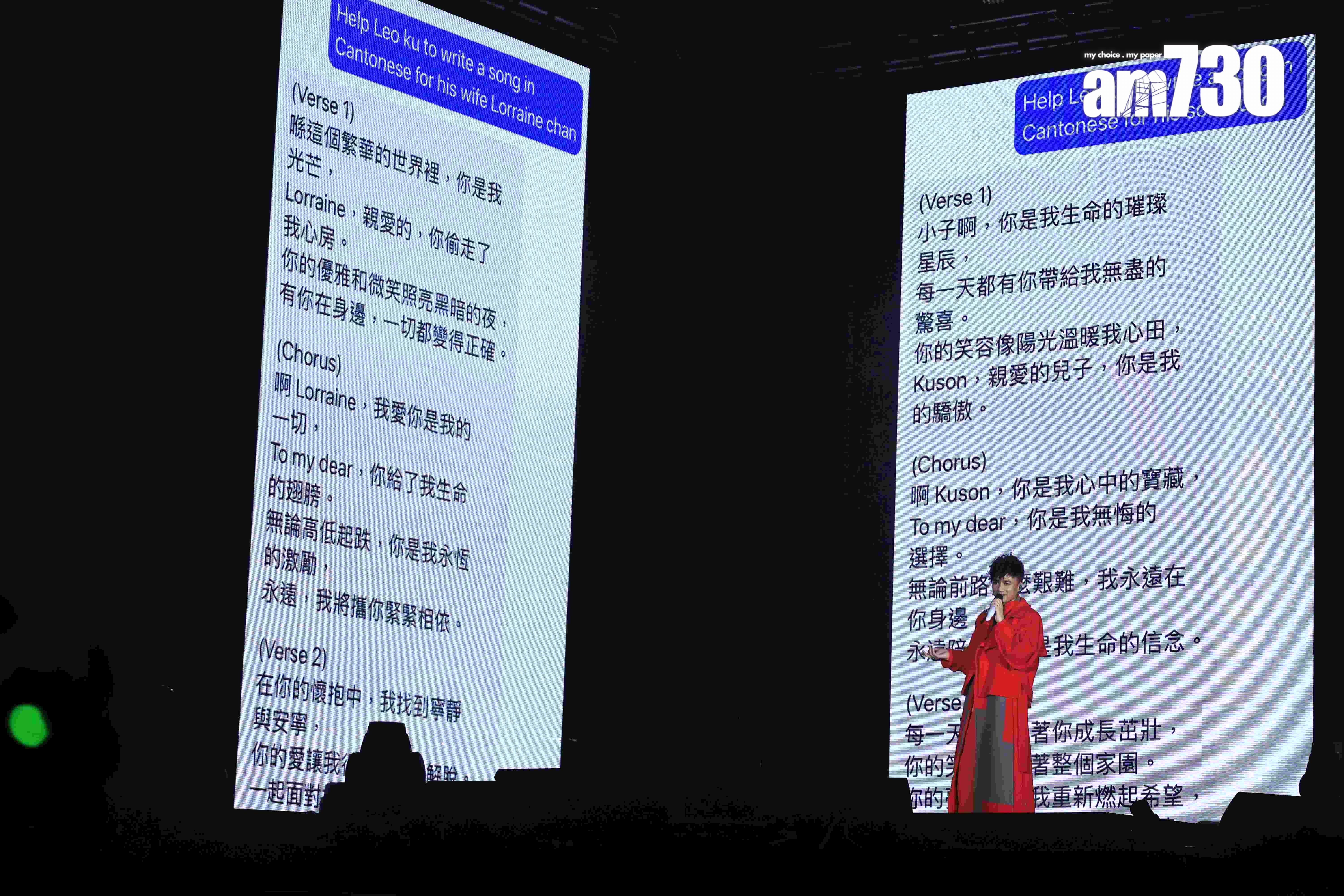 古巨基相隔4年,昨晚(8日)終於再踏舞台舉行《I REALLY LOVE TO SING|AROUND THE WORLD LIVE 2023》,他請來多位曾合作的新生代歌手包括MC張天賦、Tyson Yoshi、細貓(應智越)、吳保錡、黃明德擔任嘉賓,非常熱鬧。今次是古巨基榮升人父後首個個人演唱會,亦是兒子Kuson首次入場看爸爸開演唱會,古巨基笑言,以為自己是最興奮和期待的一位,怎知日前太太帶兒子來看彩排時,兒子即嚷著要與爸爸上台跳舞,當被帶落後,又向媽媽訴苦:「我好唔開心,點解要帶我走。」