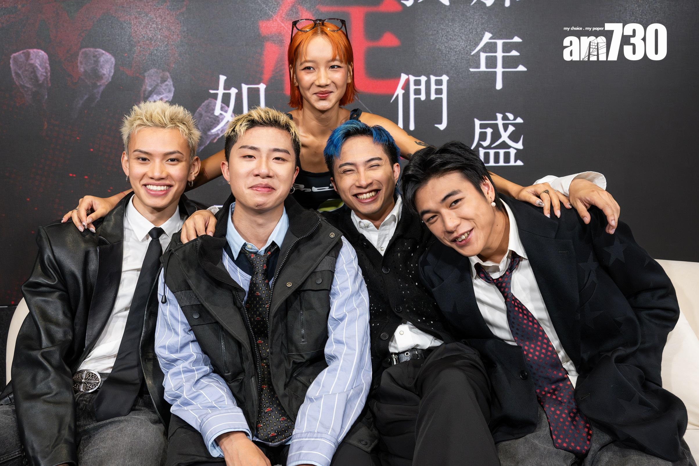 Marf與陳焯嵐、蔡承恩、陳傑奇和黃偉聰形容《那年盛夏我們綻放如花》展現人性不同的自私面向。(陳奕釗攝)
