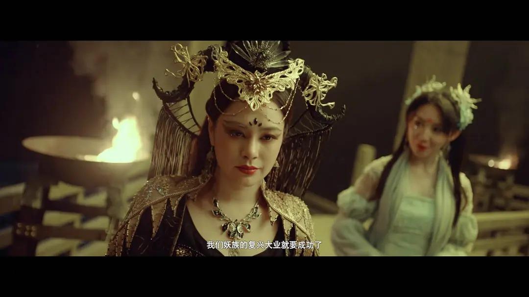 阿嬌飾演的妲己濃妝抹艷,她成為了商朝的皇后,拉開了天下之亂的序幕。(電影截圖)