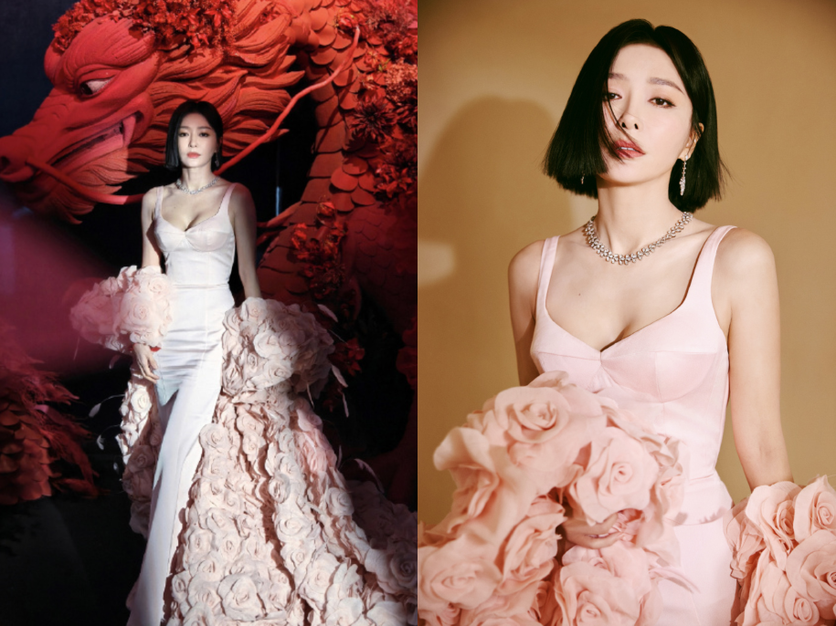 44歲內地女星秦嵐因演出古裝劇《延禧攻略》中的富察皇后爆紅,近日她現身「微博之夜」,換了兩套禮服,一套為粉色綴滿花朵的浪漫風格,另一套則是開超高衩的黑色禮服,吸引許多網友。