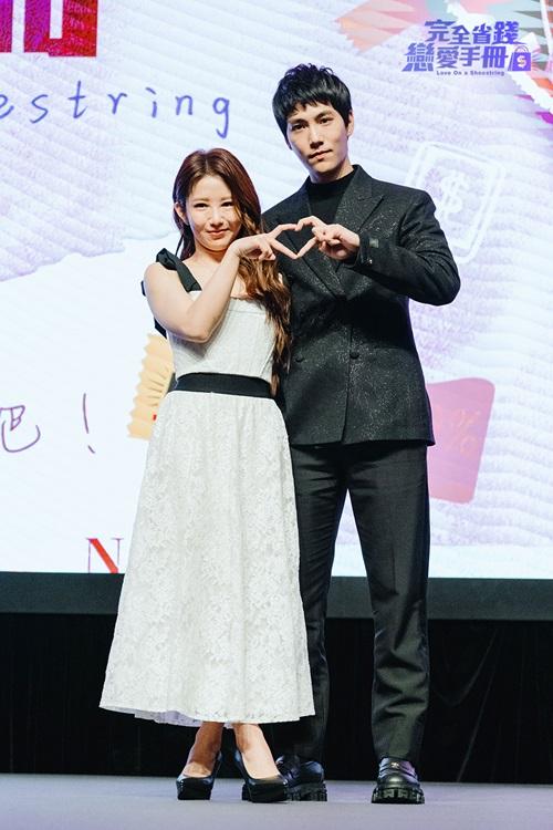 郭書瑤身穿低胸吊帶裙,大騷事業線,林子閎(左)為新劇《完全省錢戀愛手冊》盛裝出席香港國際影視展 。(圖:TVBS) 郭書瑤(左)、林子閎為新戲《完全省錢戀愛手冊》到香港宣傳 。(圖:TVBS) 郭書瑤暌違五年再度來港,興奮表示想吃叉燒。(圖:TVBS)