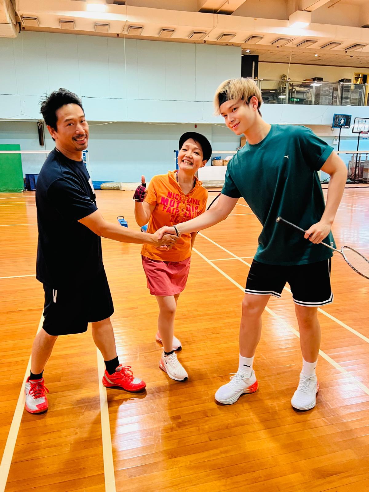 郭偉亮、程凱欣、黎展峯一齊打羽毛球。