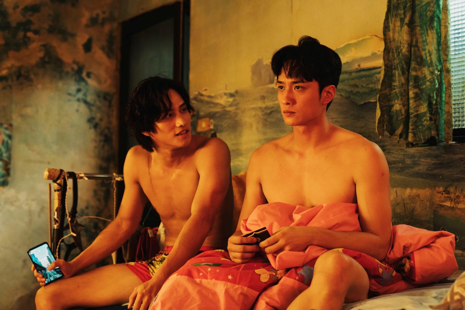 范少勳(左)和劉俊謙拍《我在這裡等你》第一場對手戲就肉帛相見。