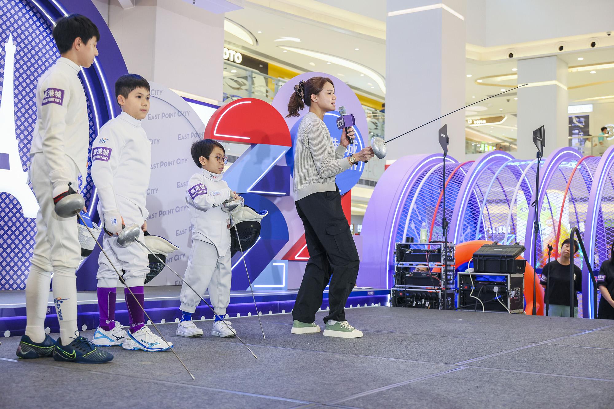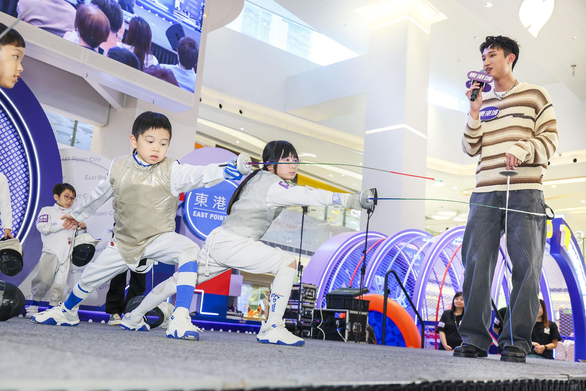 香港劍擊運動員連翊希及蔡俊彥到商場出席活動,更即場教小朋友打劍。