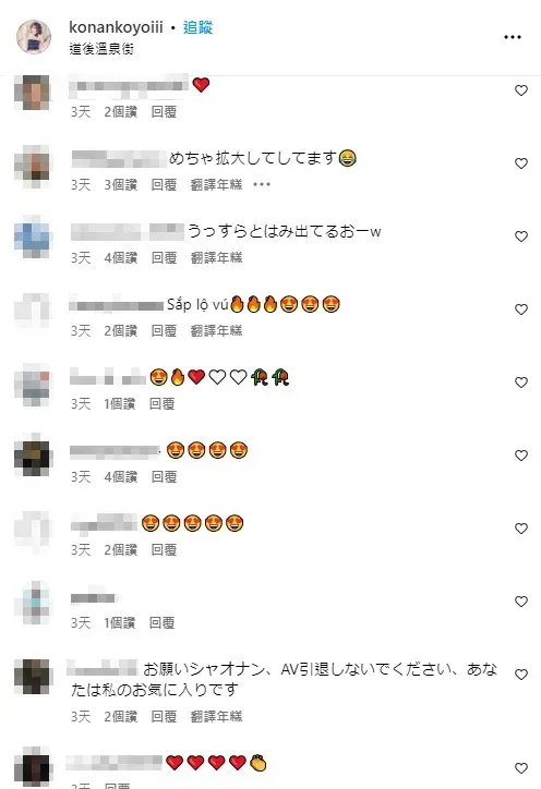 畫面中,她豐滿的上圍呼之欲出,也吸引了大批粉絲留言:「身材真好...」、「忍不住放大了」、「太漂亮了」、「世界上最適合露天溫泉的女人」、「想跟妳一起泡」、「拜託不要太早引退,妳是我的最愛」。