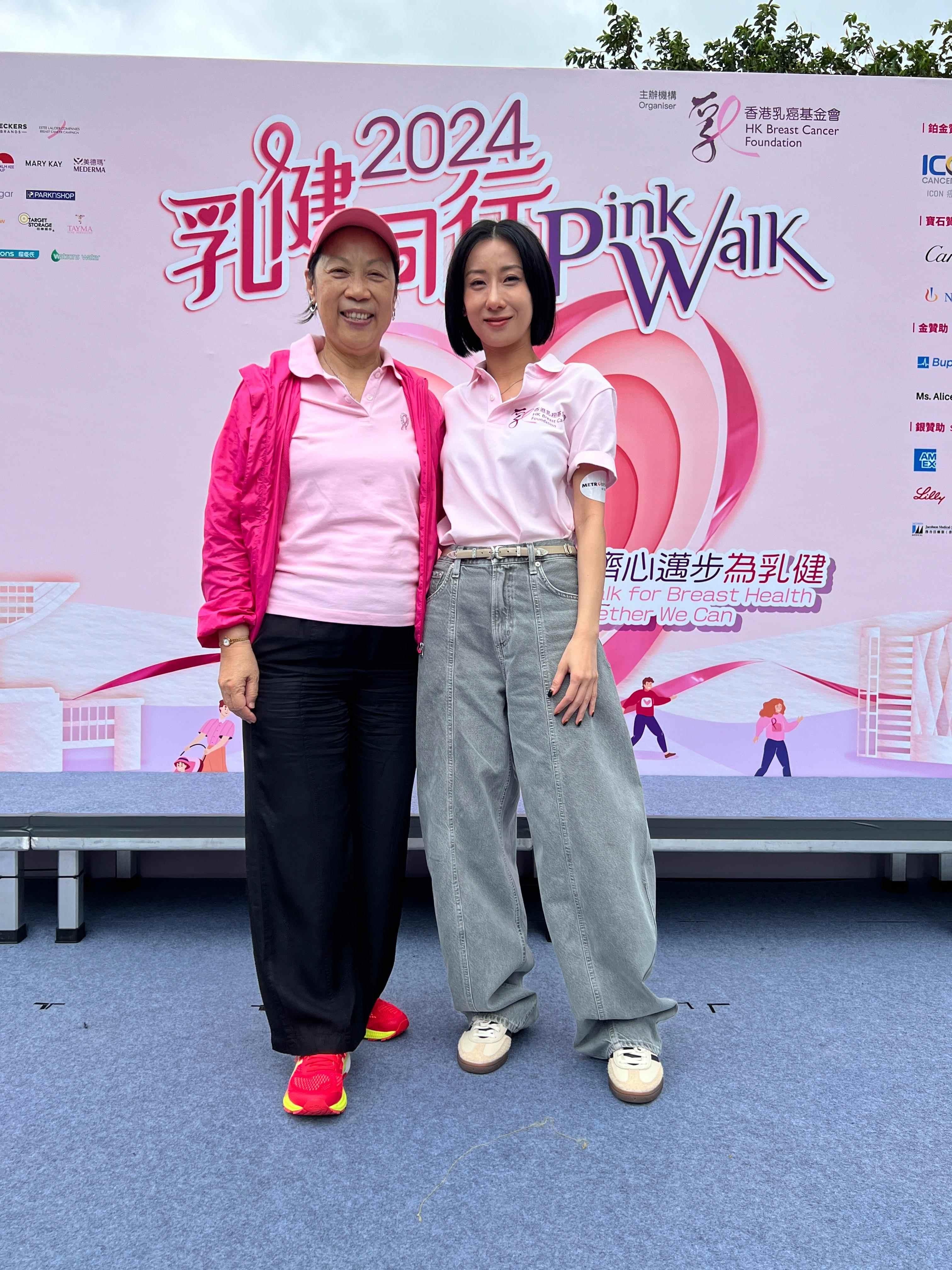 連續19年以香港乳癌基金會大使身份出席「乳健同行」的廖碧兒興奮表示:「由第一年開始,每年無論身在何方,我都一定特登飛回來出席,今年已經第19年,下年係20周年紀念,到時一定出席。」她並解釋一直支持香港乳癌基金會慈善步行籌款活動「乳健同行」原因,既可以做運動,又可以做善事,幫助乳癌社群,並提醒大家在活動過後,要繼續支持基金會的工作。而朱千雪更是產後首次現身活動,對「乳健同行2024」全力支持。