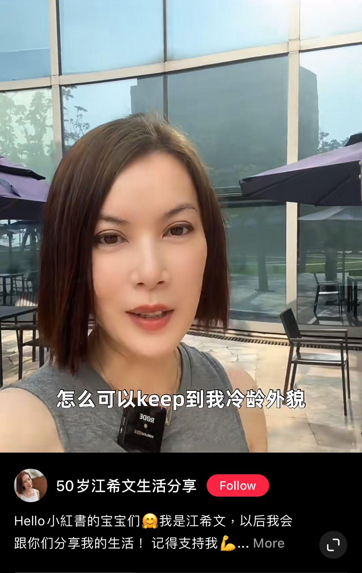 現年51歲嘅「美魔女」江希文(Liz),當年被黎明選中成為《夏日傾城》MV女主角而備受關注,其後更成為歌手及演員,不過佢喺2015年與年長20歲嘅資深大律師胡漢清結束3年婚姻,雙方更因囡囡撫養權及生活費鬧上法庭,之後成為單親媽媽嘅江希文淡出幕前,生活亦變得低調。早前Liz喺內地社交平台小紅書開設帳戶,上載影片與網民分享近況及美顏心得。