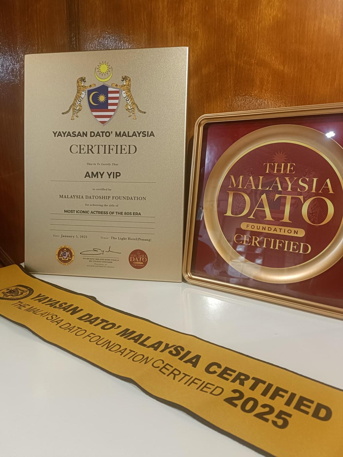 Amy同時和大家分享一個好消息:「馬來西亞拿督基金會 (The Malaysia Dato Foundation ) 剛於1月5日頒發了一個《80年代最具影響力女演員》奬項Most Iconic Actress of the 80’s Era給我,當我知道這個消息後真的有點不敢當,但也很開心和多謝大會,不過因頒獎當天我已回港,我唯有預先錄製得奬感受給大會於頒奬禮時播放。我在等這個奬從馬來西亞寄來香港,以便放在家中閒時可以拿出來欣賞。在此順祝大家蛇年身體健康,順順利利。」