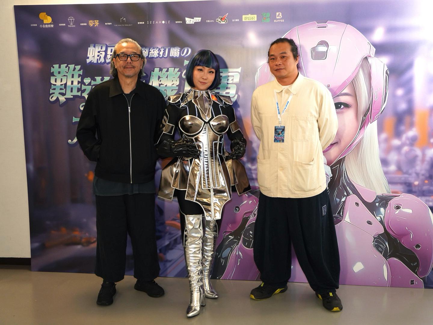 以網絡、愛情、港式癲狂幽默貫穿舞台劇《獨腳絲打噏の難道手機冇電才去愛》,蝦頭楊詩敏將施展渾身解數,帶觀眾穿梭虛擬與現實,笑爆男女關係在科技下之荒謬日常。蝦頭昨日(7日)於開騷前夕,以AI機械情人造型,聯同導演海潮及藝術顧問張錦程,現身藝術中心壽臣劇院,進行終極綵排,準備發放愛的力量。蝦頭表示,今次在劇中有很多新嘗試,當中會坦承與觀眾分享感受,相信大家能有一番體會。