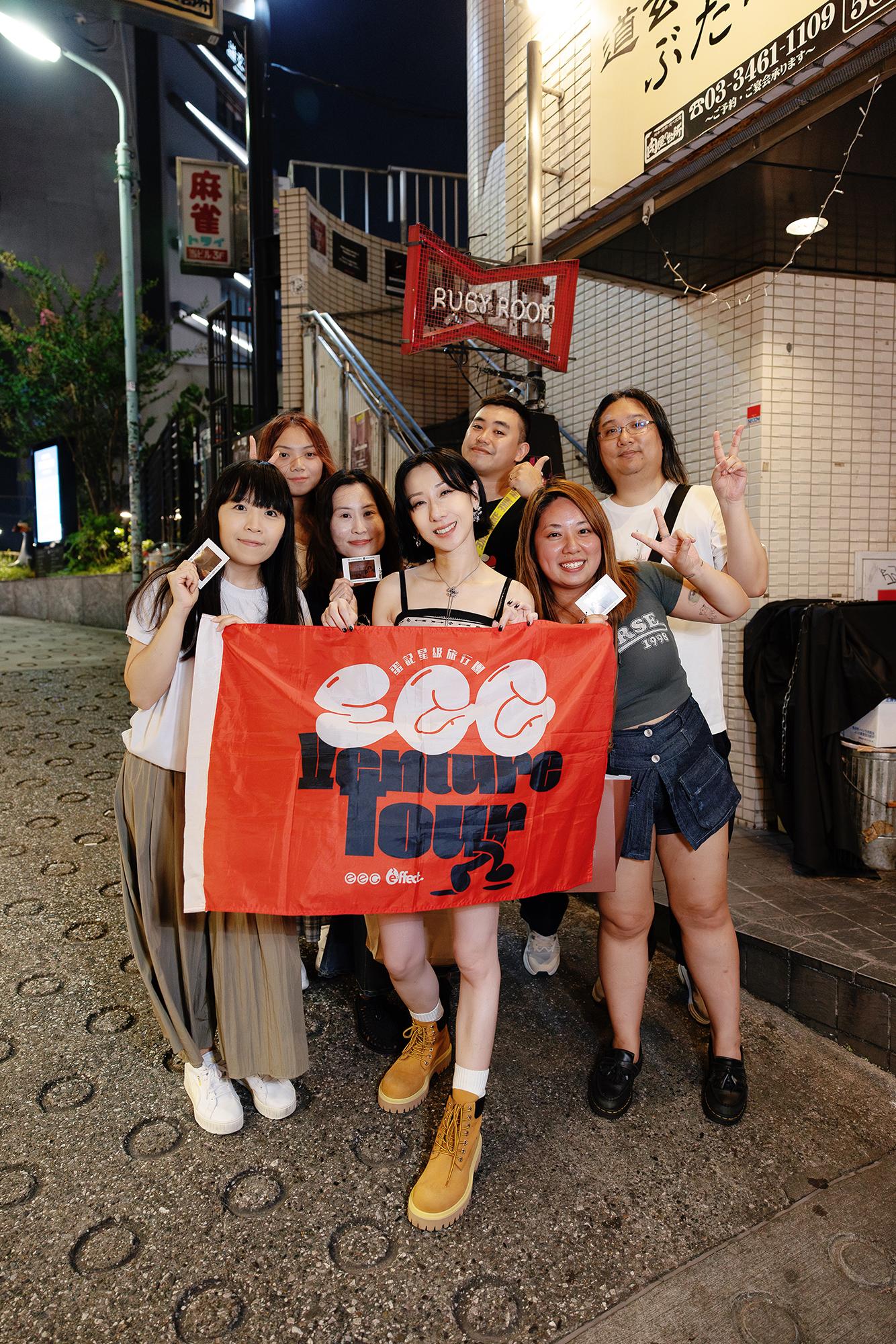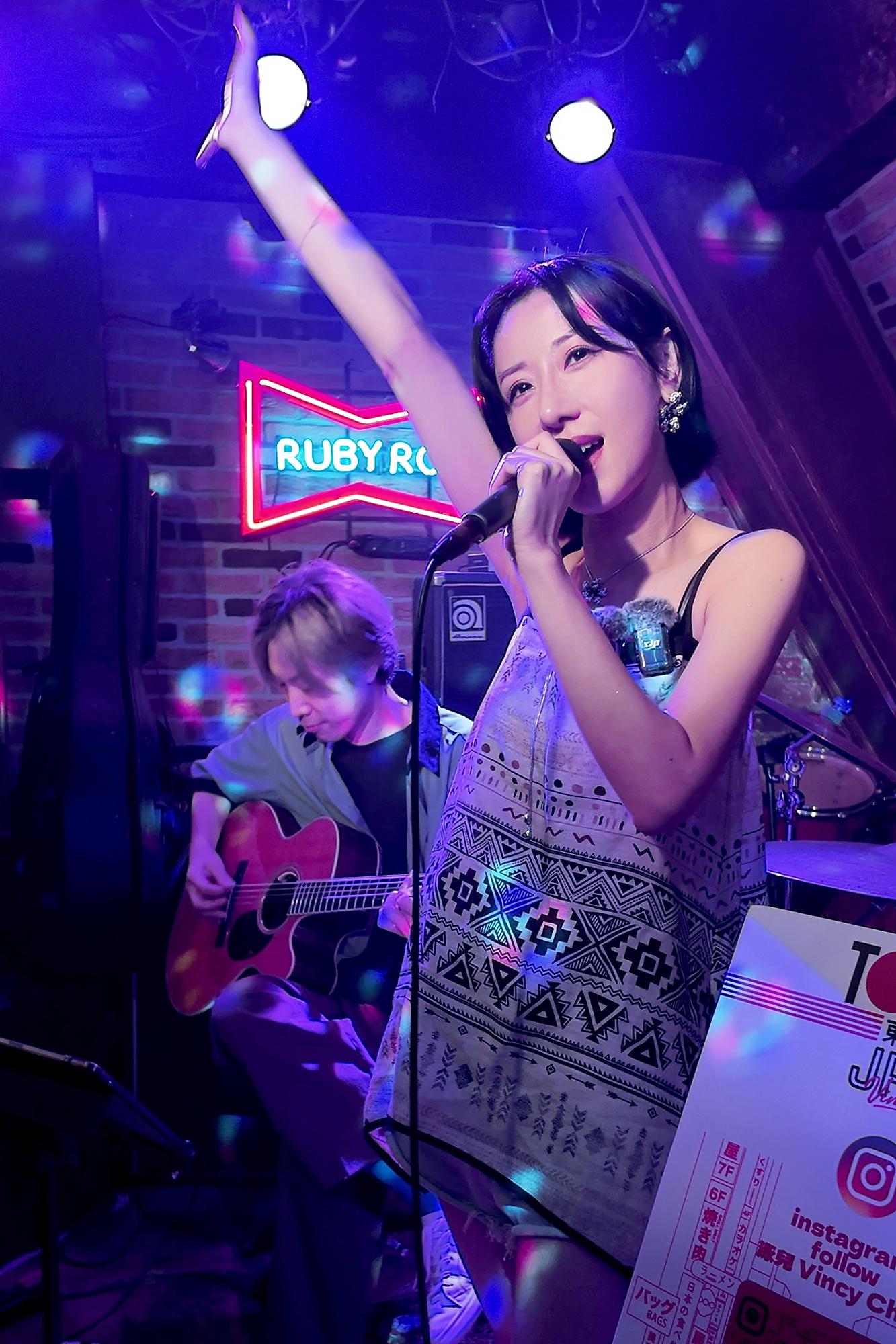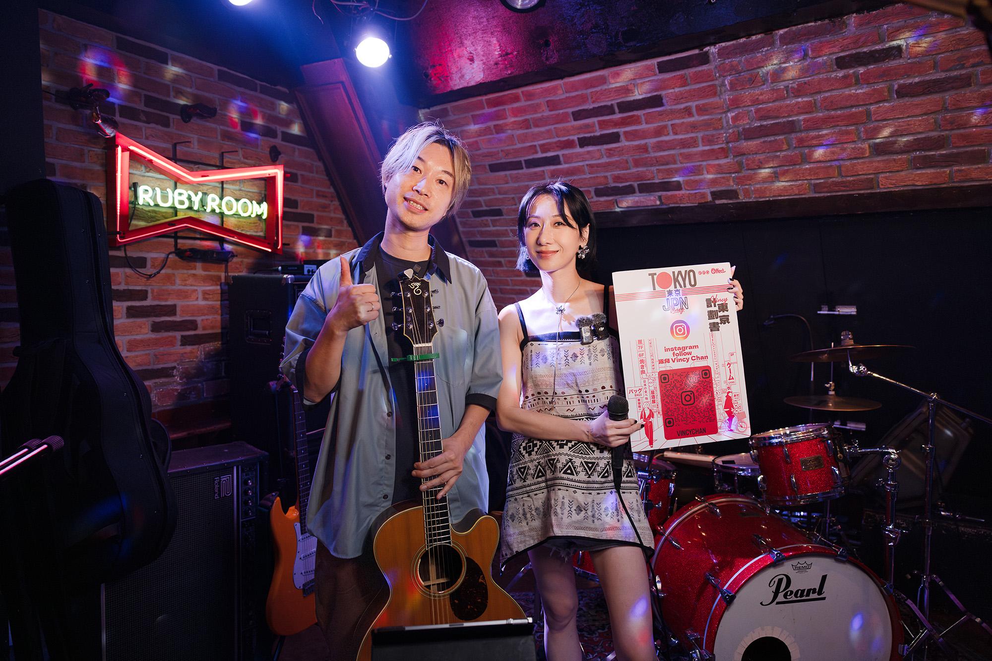 出發前,Vincy自爆這次「快閃Live」全靠Kendy做「盲公竹」,「佢熟日本嘛,佢推介呢個地方俾我,我諗住橫掂都同fans一齊,不如癲一次!」原來Ruby Room每逢星期二有open mic時段,只要上網報名、自備兩首原創歌,就有機會「霸位」十五分鐘。Vincy二話不說立即報名,又選了《花無雪》及新作《計劃書》兩首歌曲,還笑言:「報名時諗住死就死啦,最驚係冇人睇我唱歌咋。」