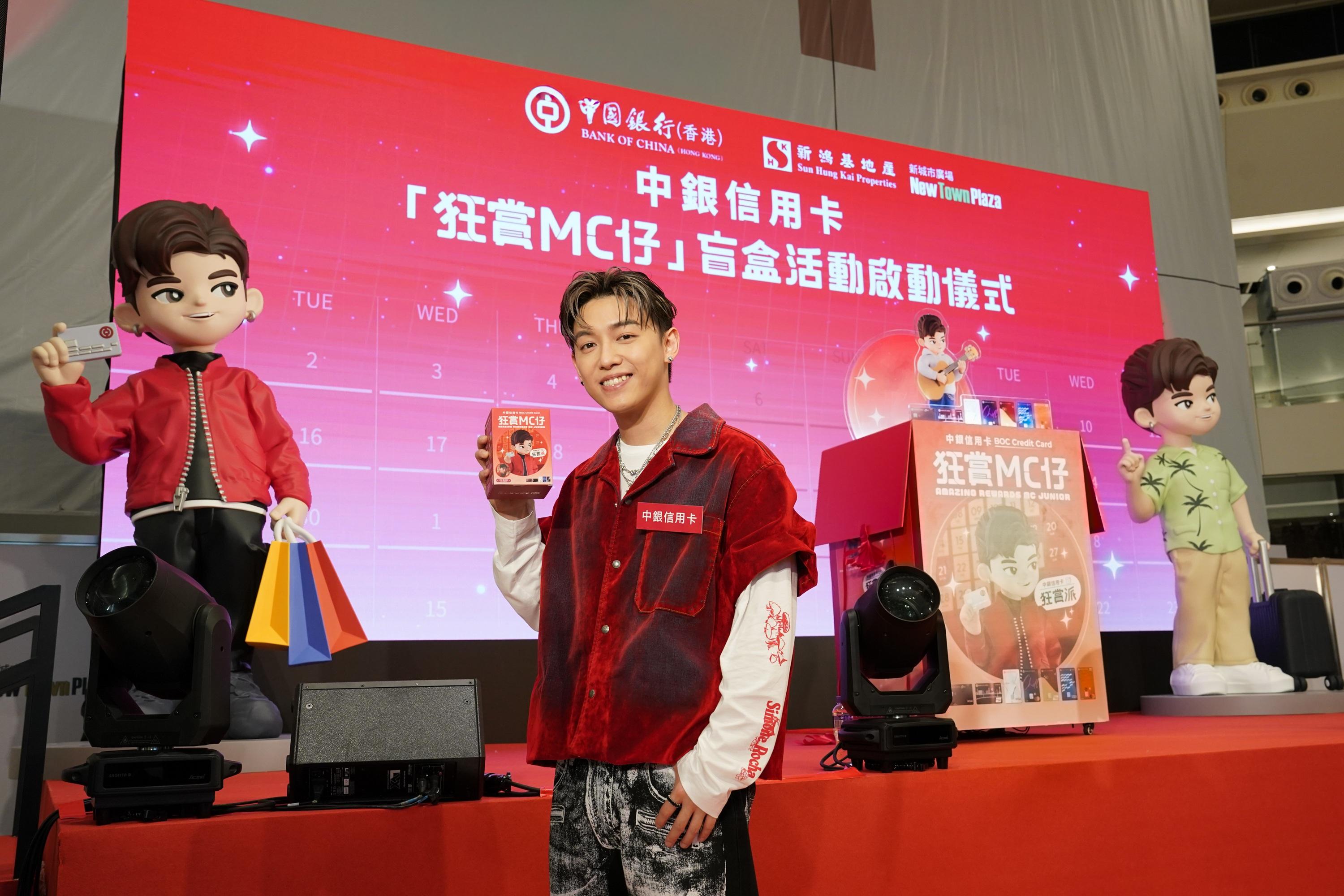 MC張天賦今日(17)到沙田出席銀行發布會,銀行為MC推出「狂賞MC仔」盲盒,他表示沒想過可以擁有一個以自己為主角的手辦公仔,自己特別愛隱藏版的Busking公仔,因為令他勾起未出道時,拿著結他到大街小巷Busking吸收演出經驗的回憶。