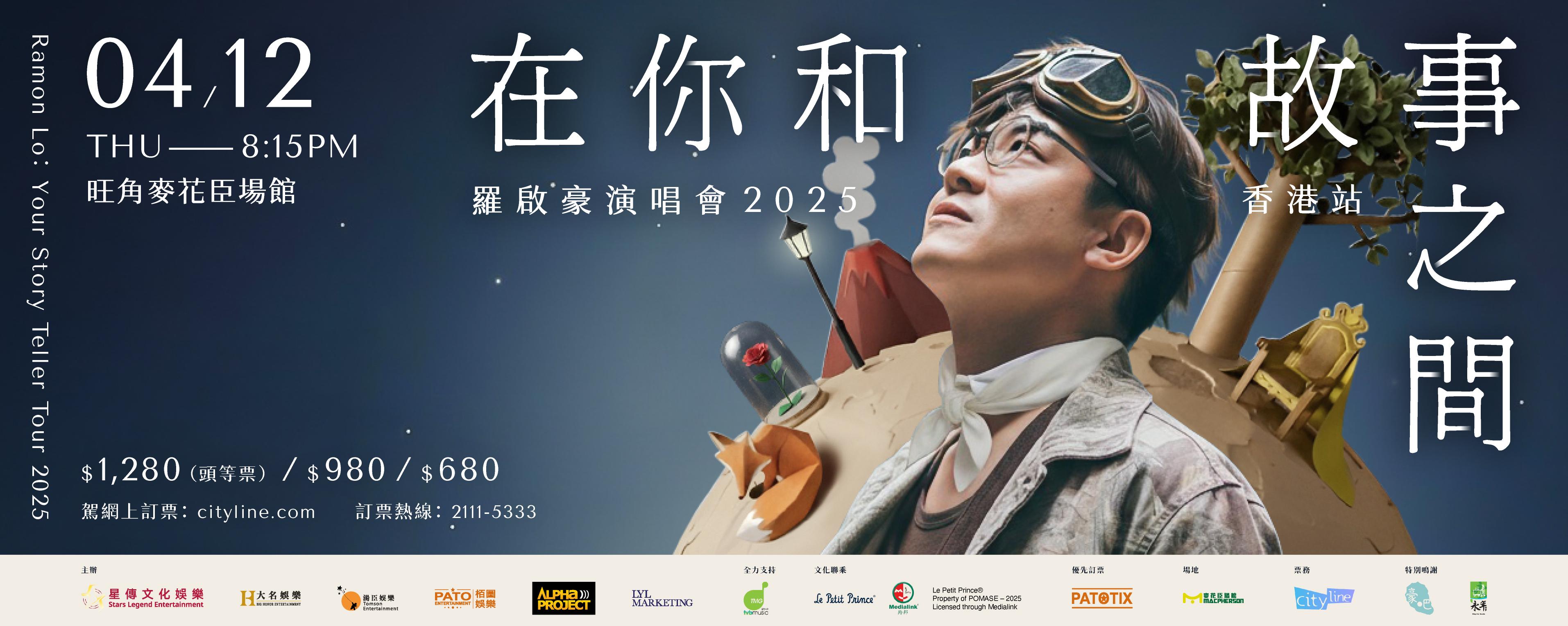 是次羅啟豪「在你和故事之間演唱會2025」,將會融入法國經典童話小說《小王子》的故事元素,Ramon表示:「很高興今次演唱會可以和《小王子》文化聯乘,我將會以音樂重新詮釋愛與信念這個主題,讓這個經典故事能在舞台上綻放全新光芒,展現跨世代共鳴。由我設計的演唱會海報也是以此為概念,我以《小王子》中的飛機師造型,結合小說出現過的火山、玫瑰花和燈柱等不同像徵性事物,透過AI 科技延伸創意,打造出全新視覺世界,充滿幻想和趣味性。」演唱會票價分為$1280(頭等票)、$980和$680三種,於本周星期四(23日)至星期日(26日)在Patotix優先發售。