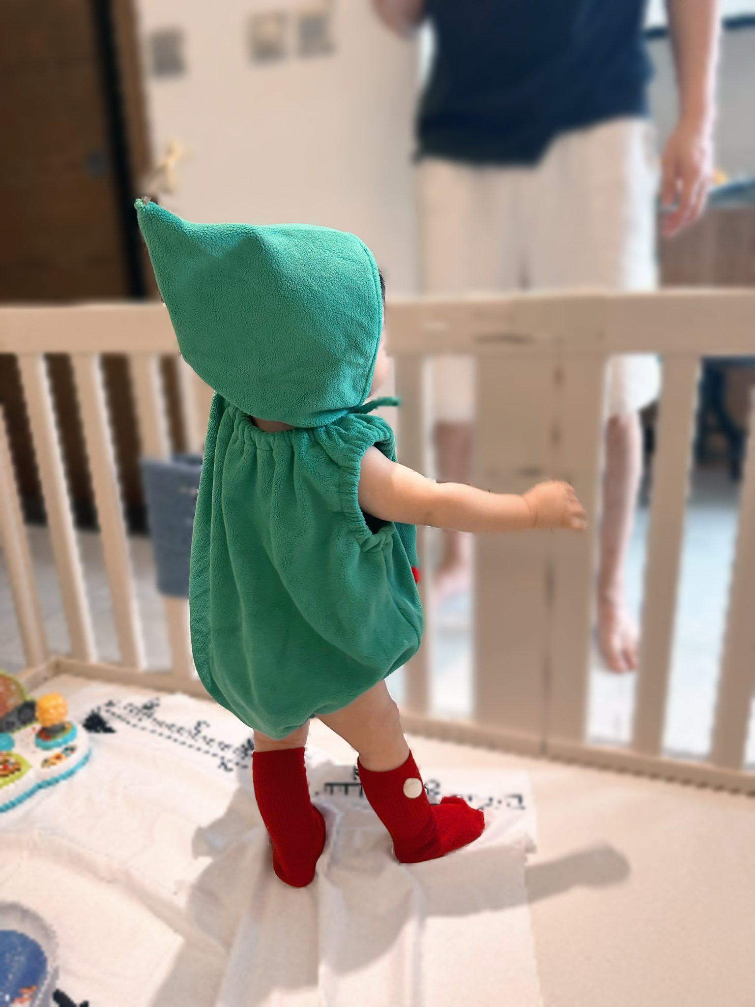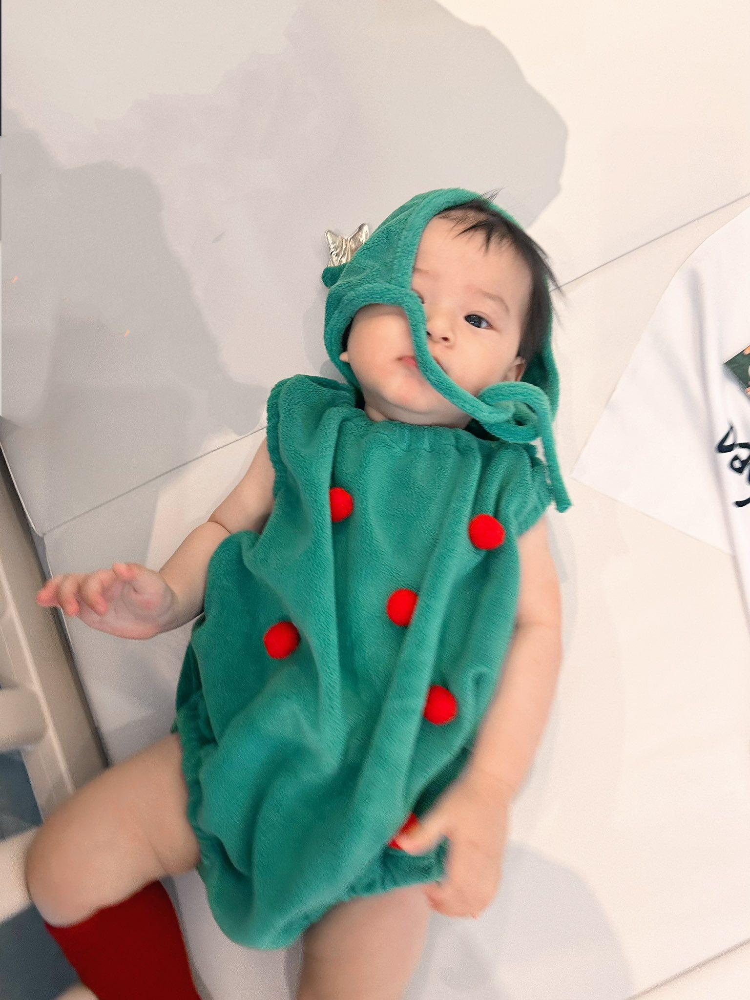 蕭正楠與黃翠如的BB「蕭哈哈」今年3月出世,他們為蕭哈哈準備好節日服飾,把囝囝打扮成一棵聖誕樹,眼仔碌碌的他非常可愛。「平安夜添加了一棵小樹,只是小樹不太合作,變成期間限定半小時。祝快樂!」