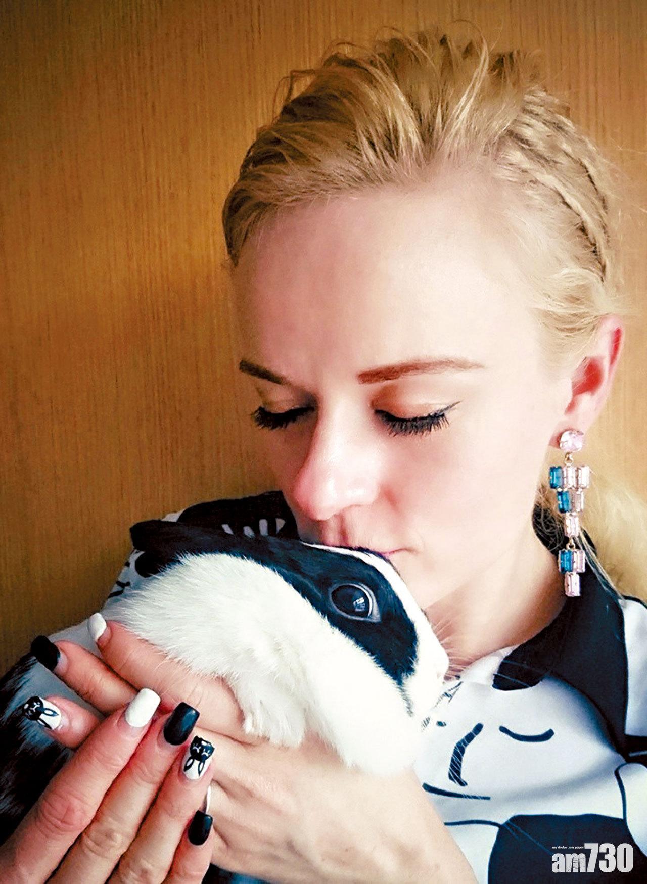 「可可」性格驚青,Corinna花了頗長時間才可把牠抱在手上。