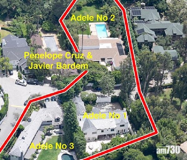 Adele在比華利山的3間靚屋分布圖。
