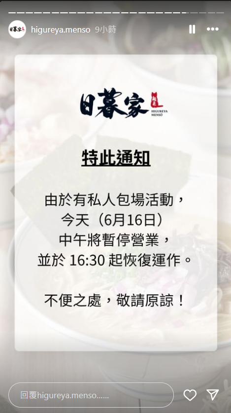 AK哥哥主理的拉麵店於今日有包場活動,有指是生粉包場。