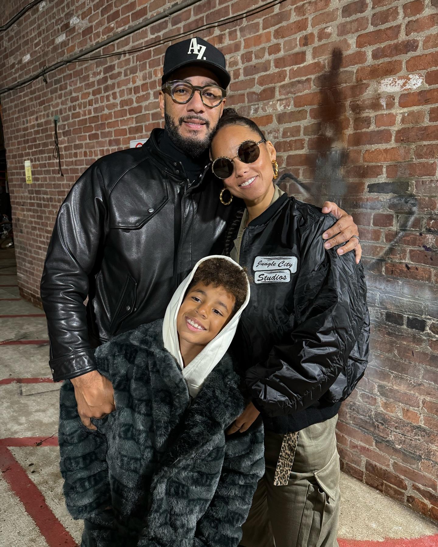 Alicia Keys與製作人丈夫Swizz Beatz及兒子。