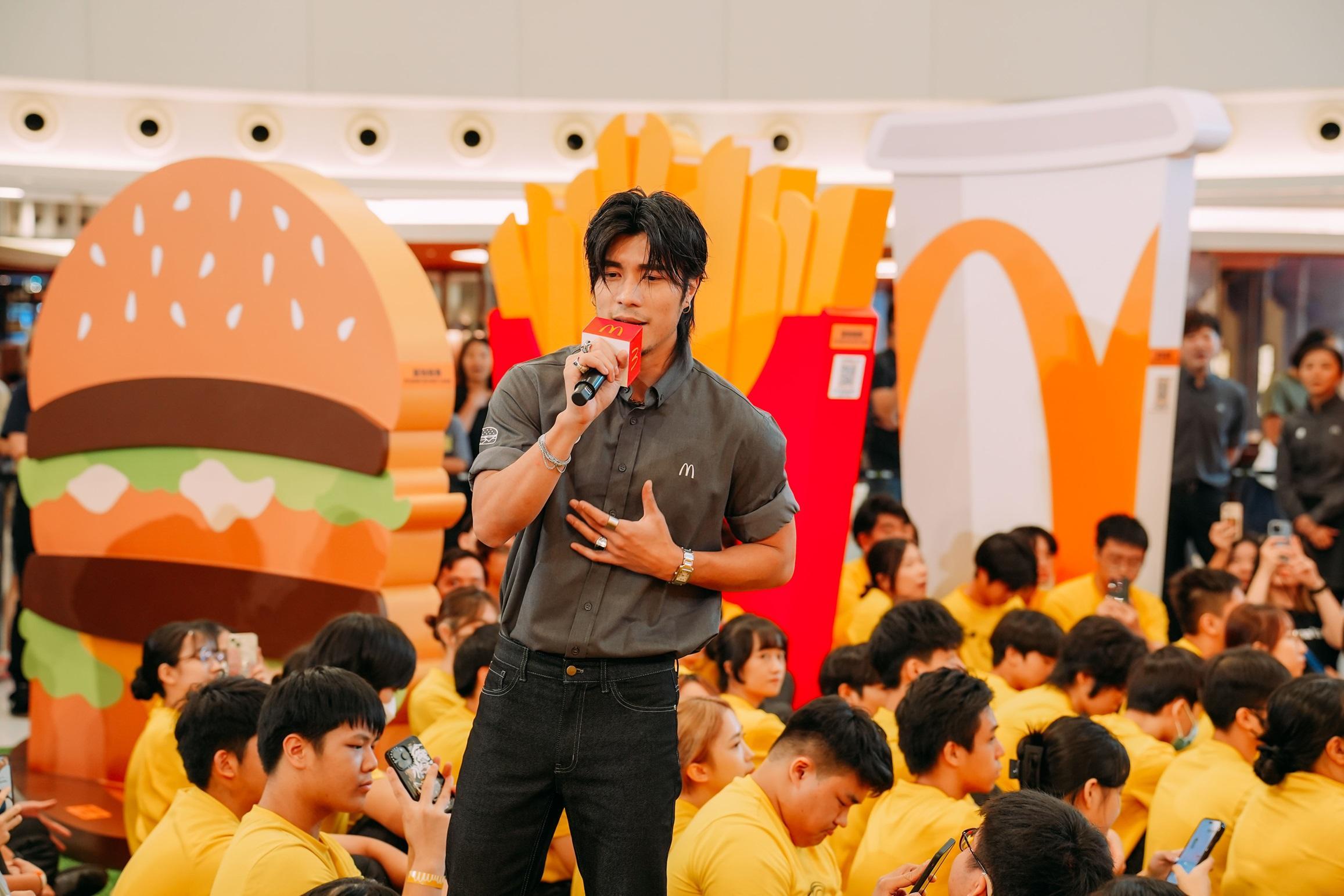 YT周殷廷日前以麥記店長身份為學生打氣。