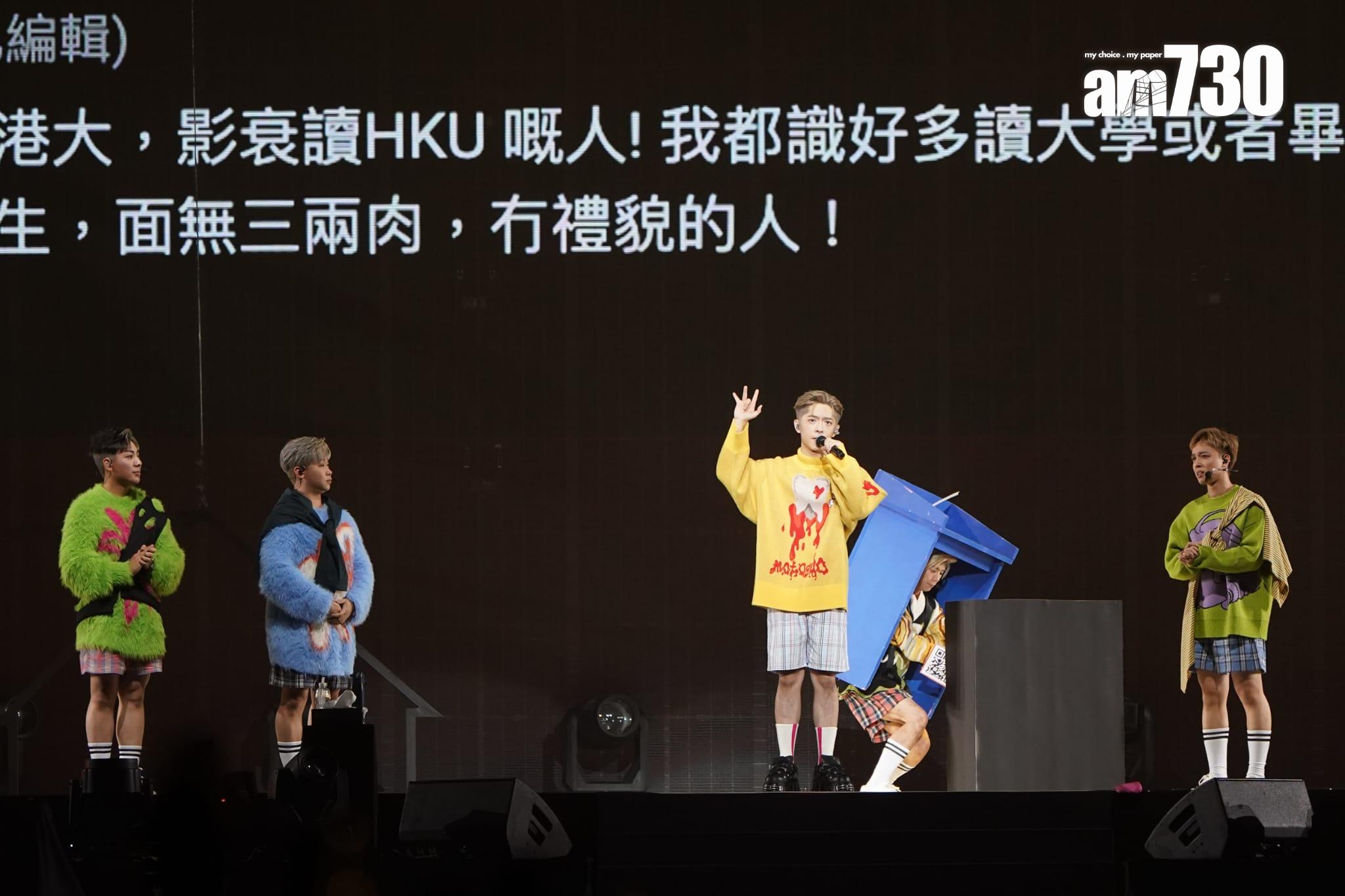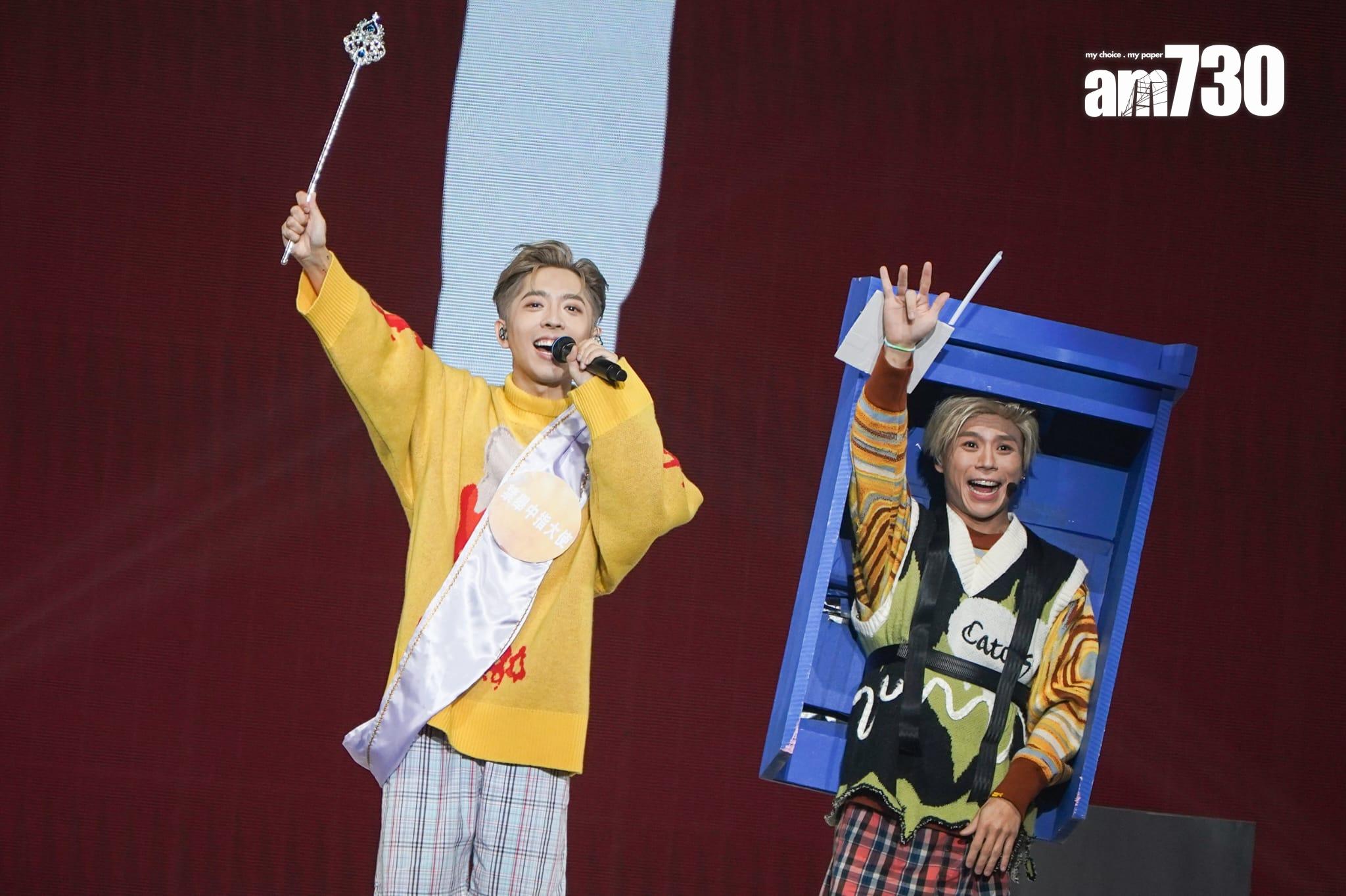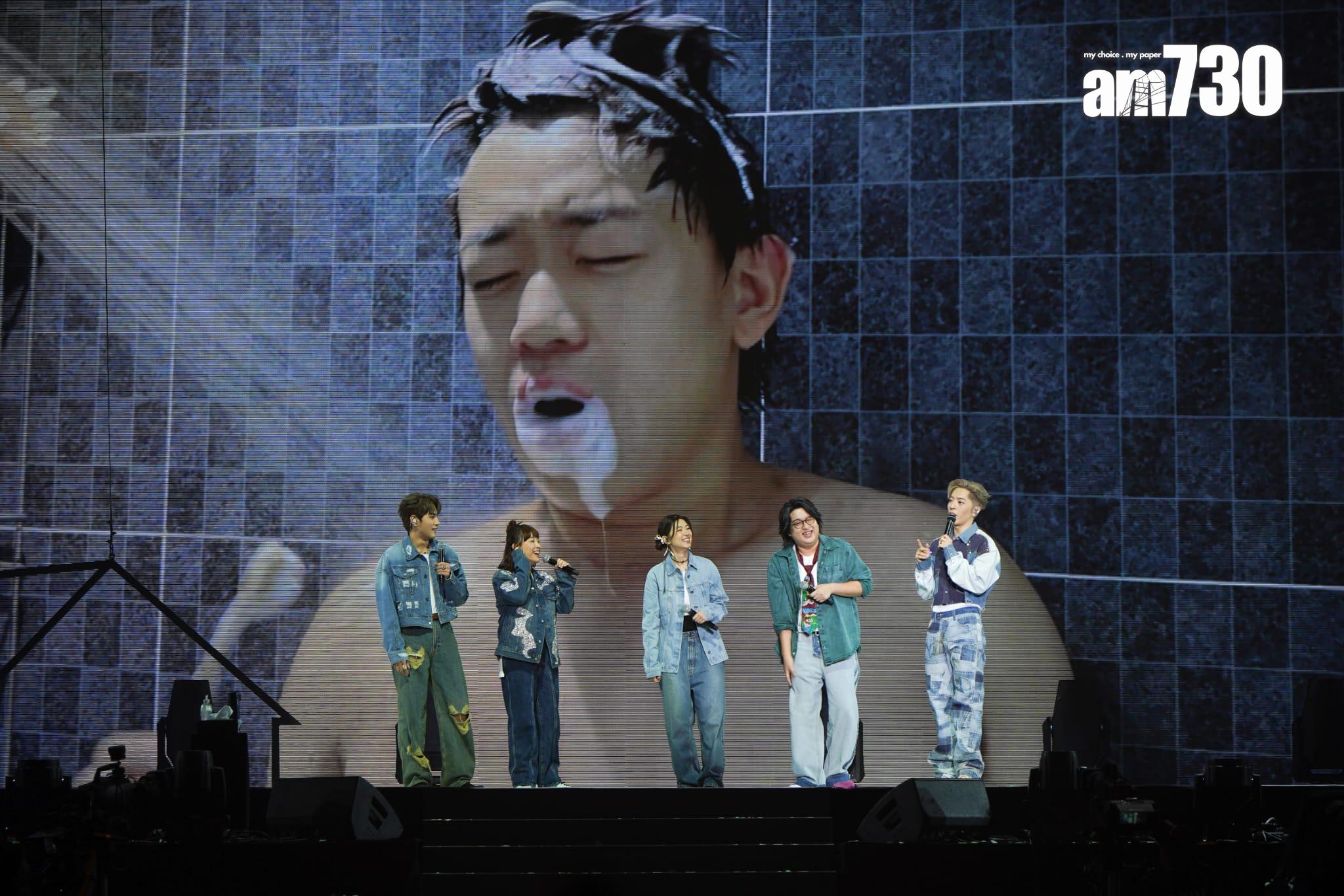 接著Edan落台,大熒幕播出3套惡搞短片,內容都是出自早前MIRROR三子個唱上的精彩時刻,Edan發揮搞笑本色,先後模仿Anson Lo於演唱會上的濕身video片段、Jer的小王子look,以及姜濤在街頭舉燈牌,笑爆全場。