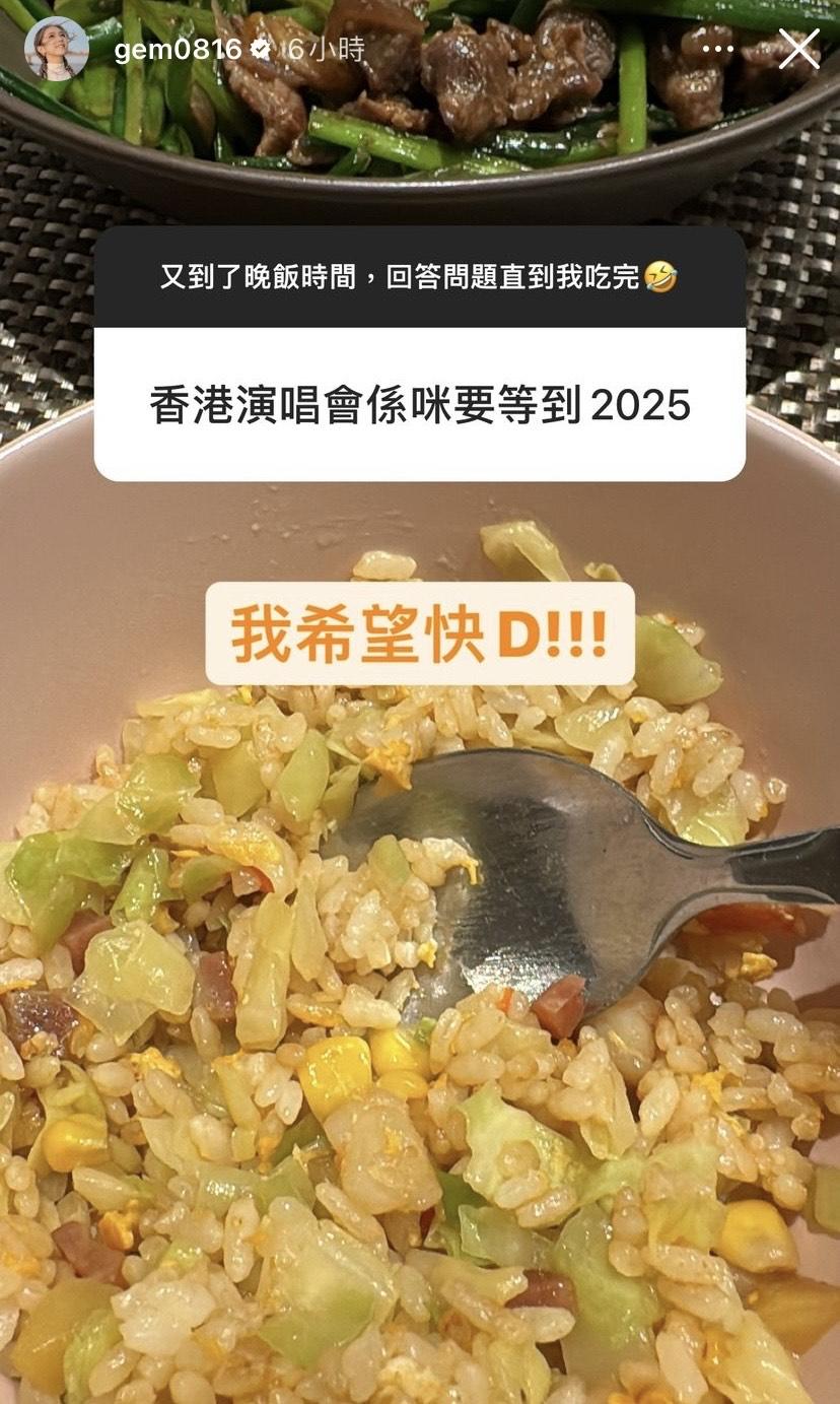其後,G.E.M.再於社交網大玩「你問我答」跟網民互動,有網民就問到:「香港演唱會係咪要等到2025?」她回覆:「我希望快D!!!」有人問到是否確實會在啟德開演唱會,G.E.M.表示:「好想係,不過都要睇下幾時起完,有D驚太耐。」當有網民問:「香港可唔可以開十場?」她則笑言:「有冇咁多人嚟先?」她更表示將會唱《天空沒有極限》廣東話版,至於,有人提議不如去紅館開,她就回覆:「都唔係唔得……但係我個LED 20米高……紅館嘅話要縮細成套舞台,同埋紅館個期都幾爆。」
