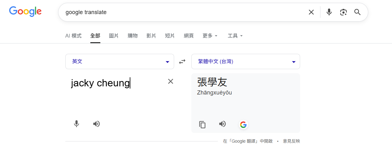 佘詩曼因為《新聞女王》這部劇集多了一個外號叫「Man姐」,平日大家多是叫她「阿佘」,甚少叫她的英文名Charmaine。日前專頁「中女講呢啲」表示為了查找「Charmaine」的讀音,於是在Google tranlate輸入「Charmaine」,沒料到發現中文翻譯一欄出現「佘詩曼」。及後再輸入「Eason」,現中文翻譯一欄出現「陳奕迅」,結果令人忍不住輸入不同藝人的英名文,看看會不會有類似的情況發生。