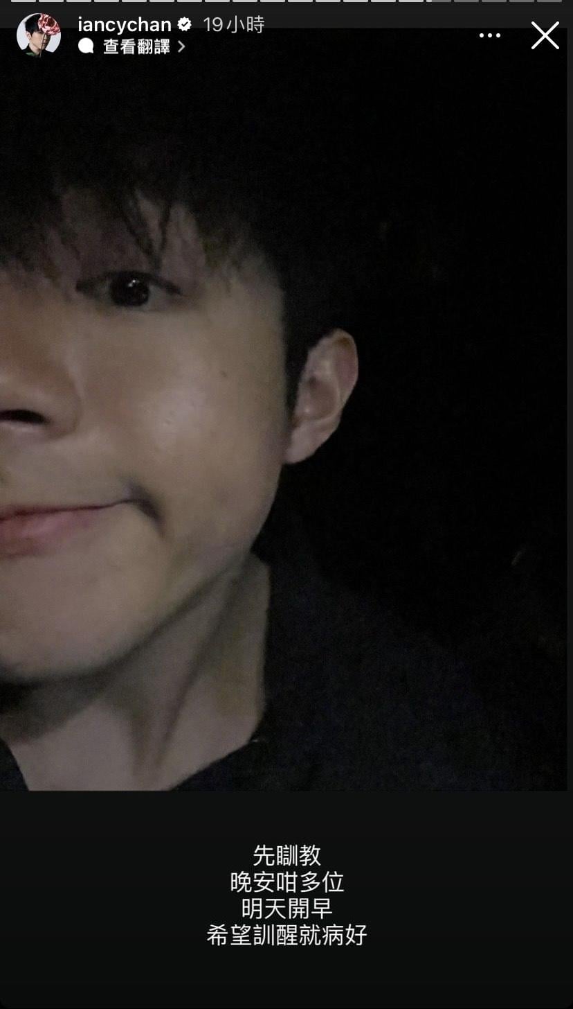 Ian昨天收工後,貼上自拍照透露自己病倒。