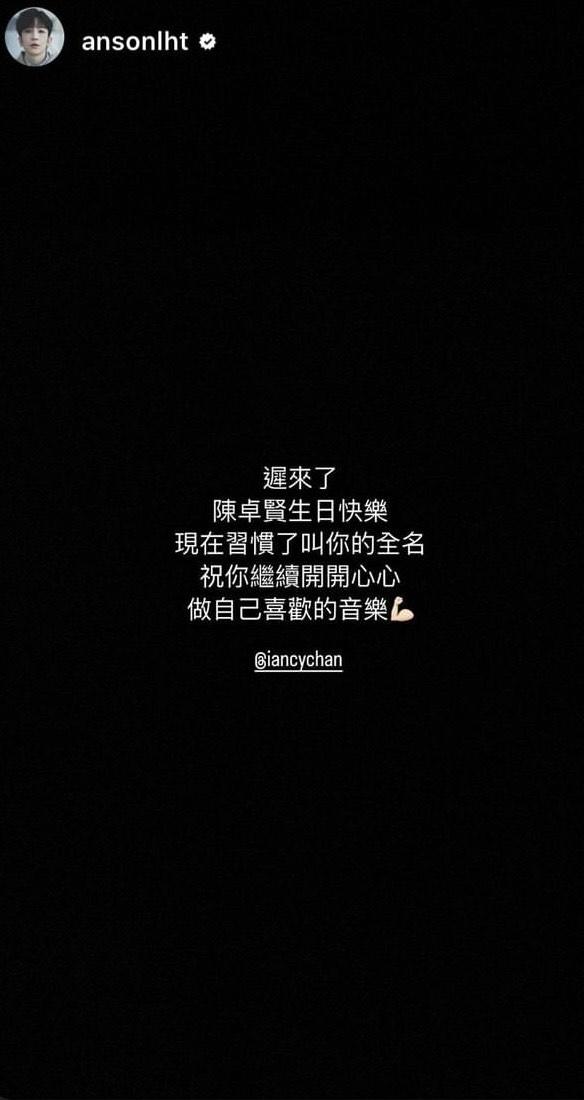 隊友姜濤、盧瀚霆(Anson Lo)和呂爵安(Edan)亦有先後在社交網留言送上生祝福。姜濤謂︰「哥,慢來的一句,生日快樂啊﹗」 Edan 分享Ian的「黑圖」寫道:「Happy birthday man」;Anson Lo則說︰「遲來了,陳卓賢生日快樂﹗現在習慣了叫你的全名。祝你繼續開開心心,做自己喜歡的音樂﹗」