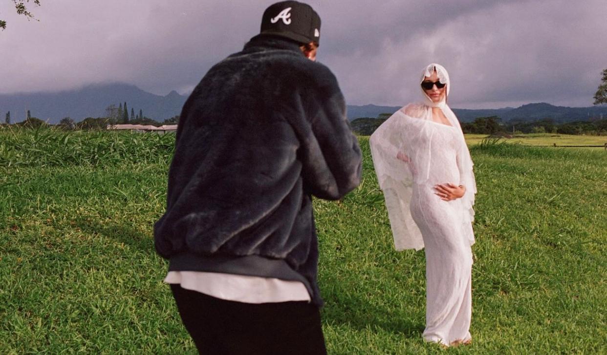 兩人即將迎接第一個孩子誕生,Hailey在影片中身穿白色喱士連身長裙,夫妻在田園中深情擁吻,現場還有牧師見證下再訂婚盟,雖然沒有發文,但是雙方Tag下彼此帳號,更特寫妻子捧著孕肚的模樣。有傳Justin Bieber夫妻正身在夏威夷,據《TMZ》報道,Hailey已懷孕超過6個月,預產期將會是今年夏天。