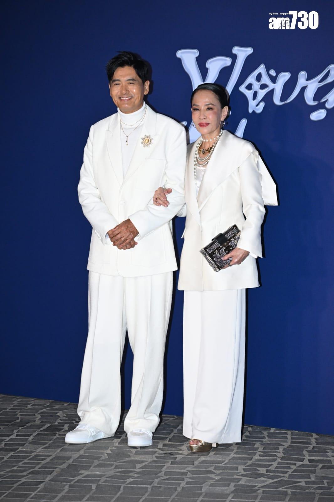 發哥和發嫂就以全白打扮出現,發哥更走到圍欄邊跟在場fans自拍。LV時裝秀最後延至晚上8時20分開始,歷時約27分鐘便結束,直播片段見到發哥獲在場不少外籍人士邀合照,而名模琦琦更成功跟設計總監 Pharrell Williams合照。