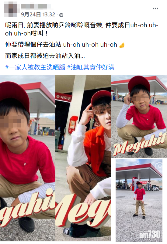 另有前夫表示「呢兩日, 前妻播放啲乒鈴嘭唥嘅音樂, 仲要成日uh-oh uh-oh uh-oh咁叫!仲要帶埋個仔去油站 uh-oh uh-oh uh-oh而家成日都被迫去油站入油…#一家人被教主洗晒腦 #油缸其實仲好滿」他更上載了囝囝扮Anson Lo在《Megahit》的造型及甫士,片中更見到囝囝在油站內唱《Megahit》。有網民留言叮囑道︰「拍片還拍片,唔好打擾人地油站運作,同埋小心睇車呀!」、「唔好喺油站玩囉..啲車出入撞親唔好」