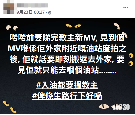 有「前夫」在「我老婆嫁左比Mirror導致婚姻破裂關注組」中提到,「前妻」看完MV發現取景地點是外家附近的油站後,立即搬回外家,苦笑道︰「要見佢就只能去嗰個油站……#入油都要搵教主#俾條生路行下好喎」亦有人留言說︰「去到油站記得摸下呢行貨架,唔好蝕。(補充:摸番教主摸過既野係會得到佢既庇佑)」、「好彩教主冇揸油槍咋,唔係個個指定排嗰格入油」