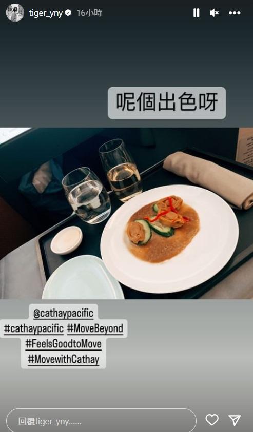 Alton與Tiger則在限昤動態貼出在機艙內的照片,二人都分享在機上的伙食,Alton有得擦鮑魚最威威。從Alton的照片見到Tiger睡覺的照片。從照片推斷,他們貼的照片都是前往墨爾本的那程飛機。