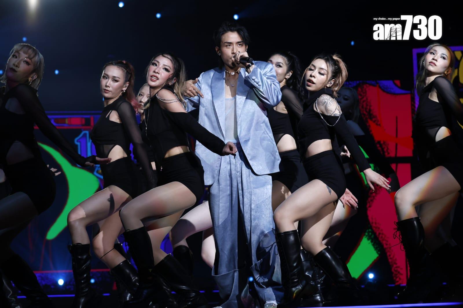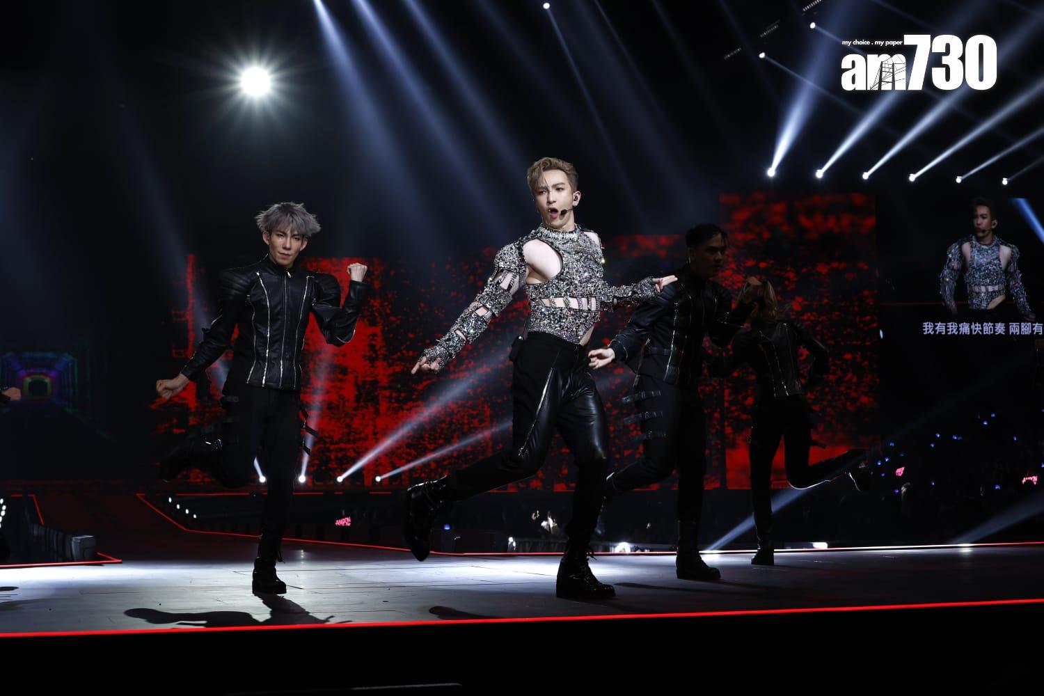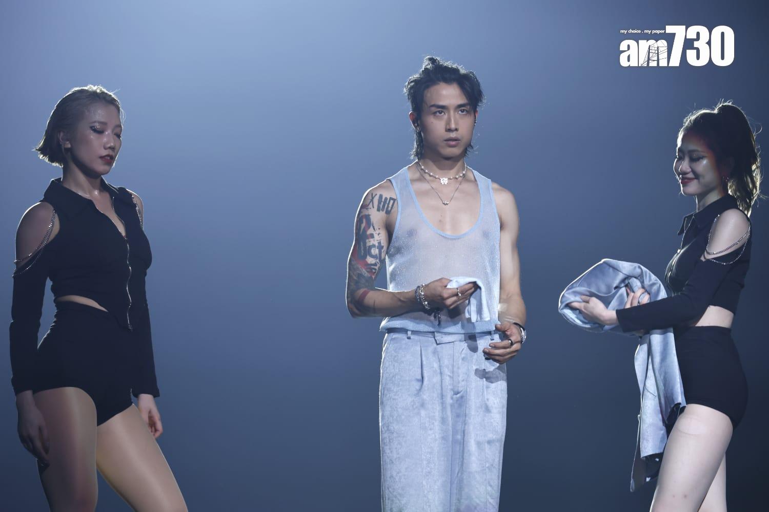 到AK的個人環節,他坐在一頂充滿日本風的八人大橋上唱《Keep Rollin’》,他更一度脫下日本風外套,露出透視背心,胸前兩點若隱若現。之後他換上淺色西裝跟女dancer大跳貼身舞,再次令現場女觀眾尖叫連連。