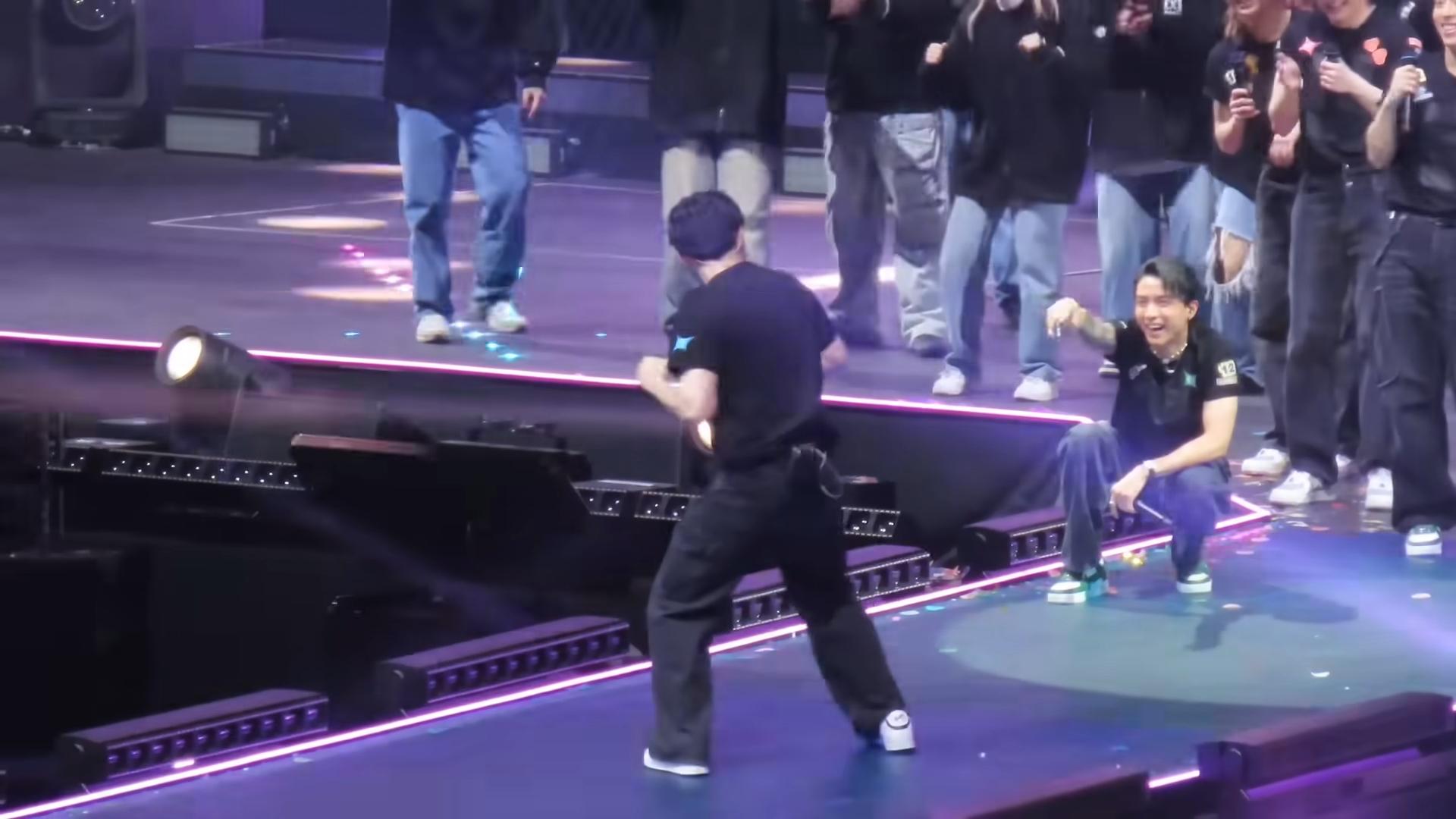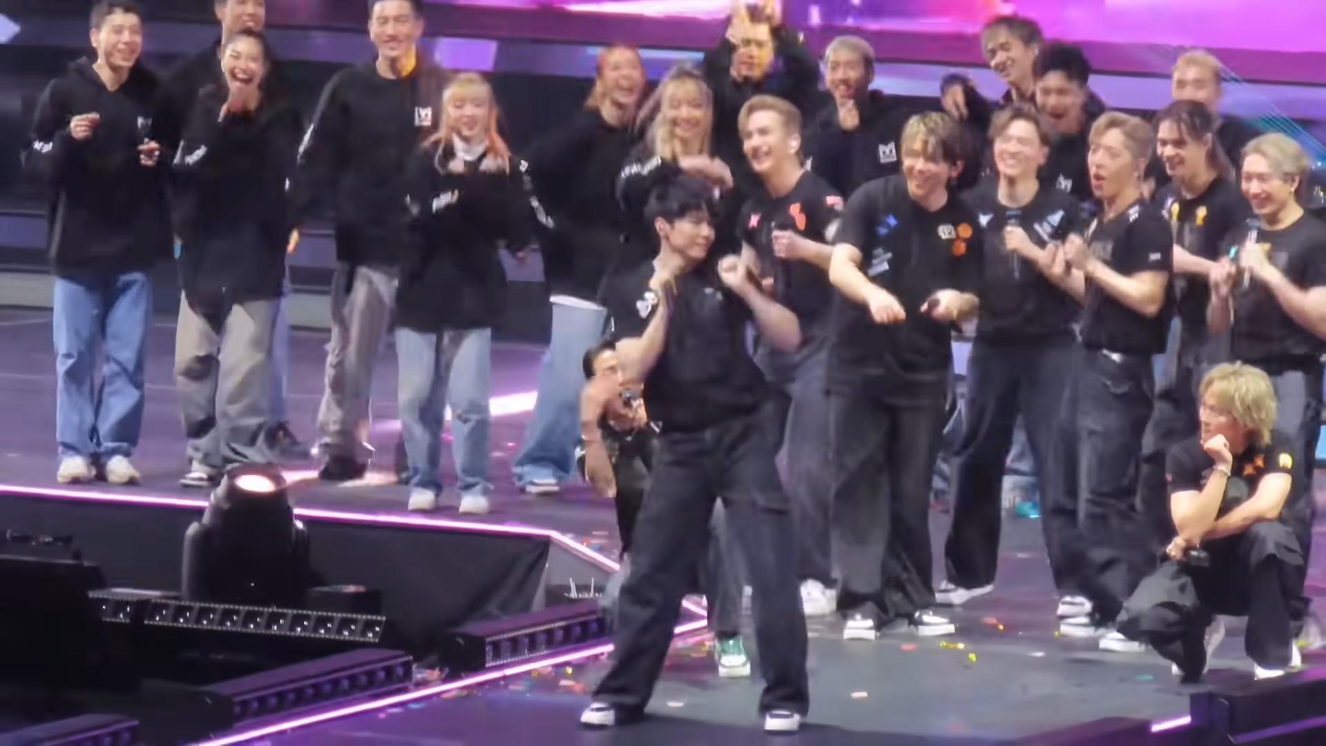 MIRROR演唱會轉眼已經舉行了一半,不少粉絲期待自己喜愛的鏡仔會在彩蛋環節表演,周四(25日)的彩蛋是成隊MIRROR一齊唱《12》,但數到最驚喜的是陳卓賢(Ian)在唱《WE ARE》就一展「精湛」舞技,大跳雞仔舞,連他本人也笑謂「大家都知我屬雞」。Ian走到台前扮雞仔揮動雙手並跳高,非常搞笑,不但全場觀眾high爆,就連隊友亦在尾聲時扮他的動作,氣氛高漲。