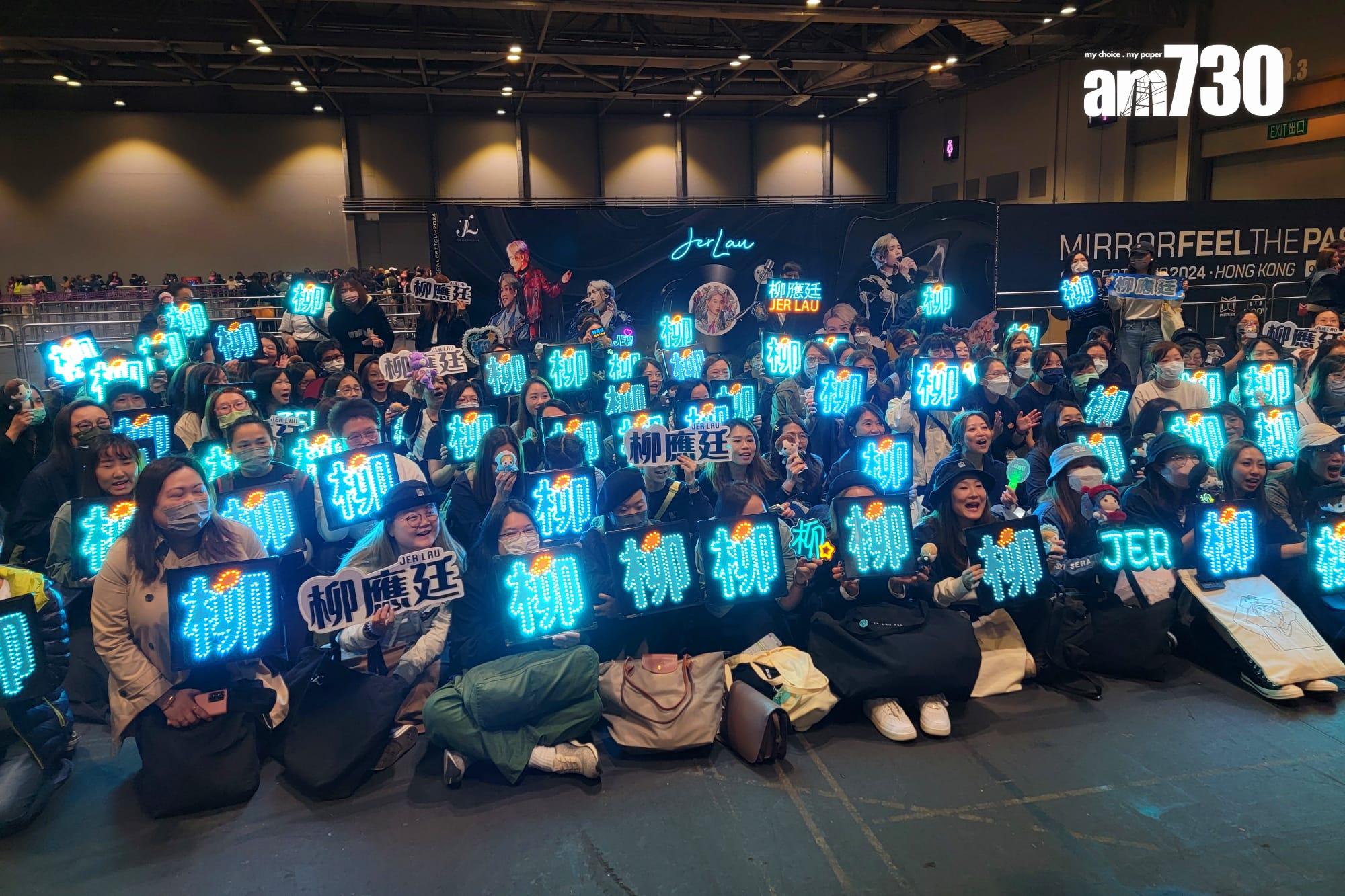 MIRROR開騷,12位鏡仔的歌迷會提早到場。圖為神徒、姜糖及Hellosss。