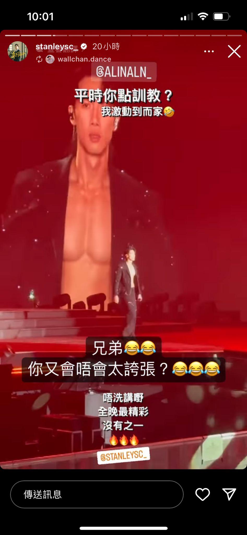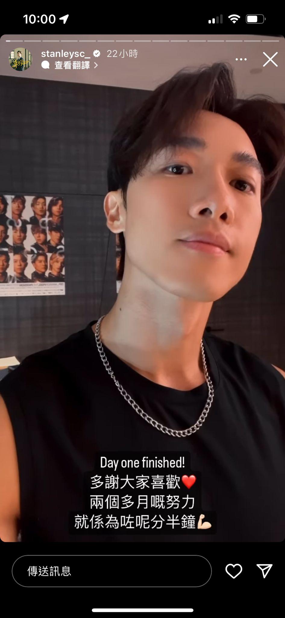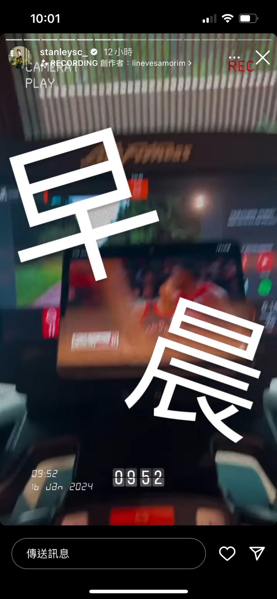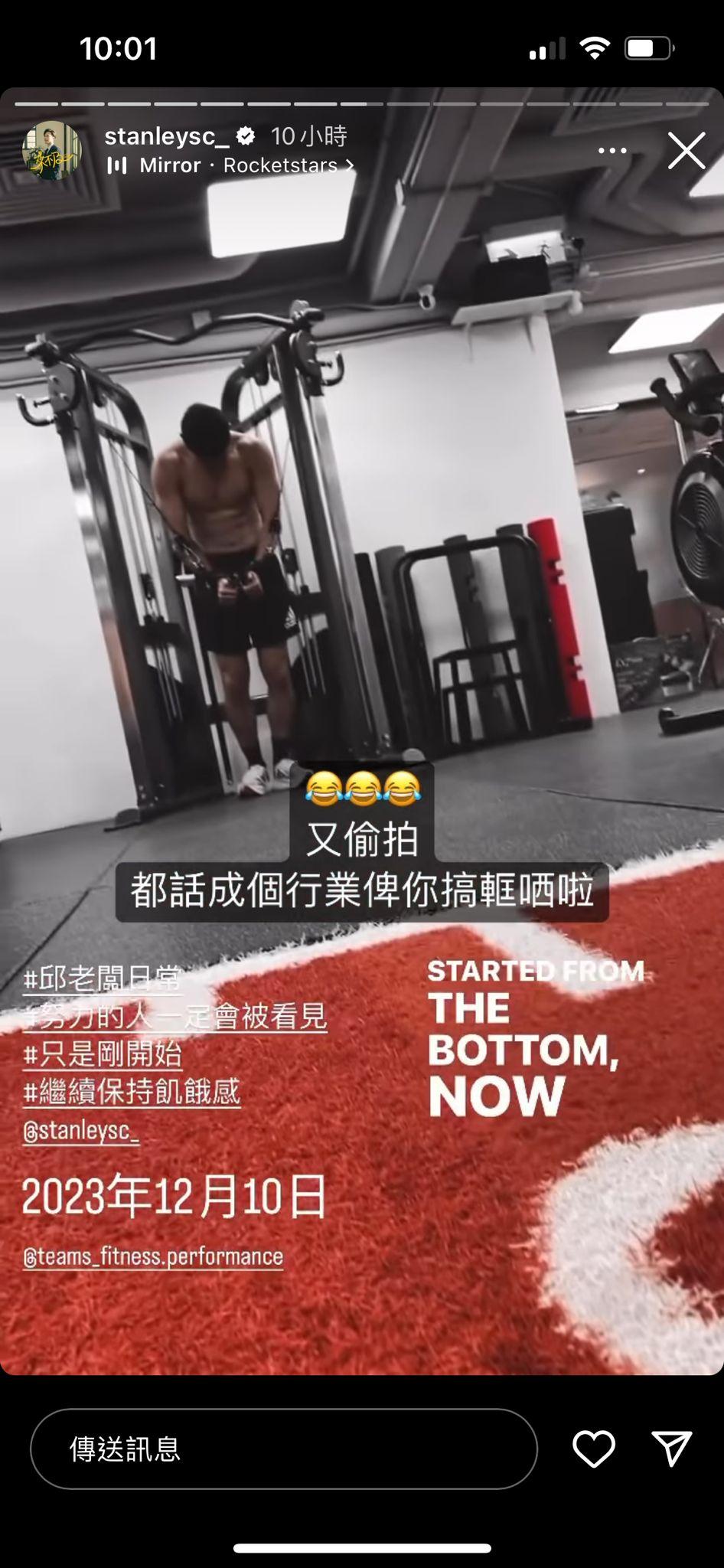 Stanley的女友Alina(李炘頤)在IG貼出片段時更忘我尖叫,留言表示自己都不知情。Stanley亦在IG提及現時fit爆的身材,全因過去兩個多月的操練。他過去在IG也有透露自己操肌的情況,但主力騷手臂。去年11月底,他表示每天都有去跑步、健身及排練,對飲食亦相當節制。