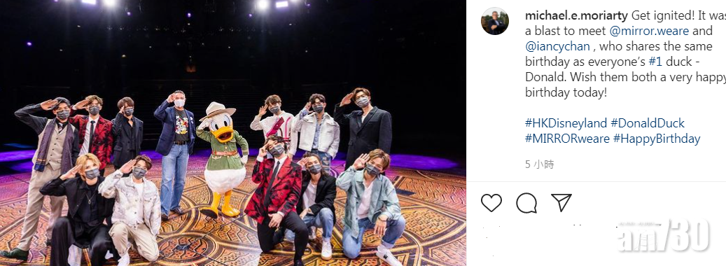 MIRROR於迪士尼樂園拍新歌《BOSS》MV,樂園行政總裁特地來探班與Ian慶生。([email protected])