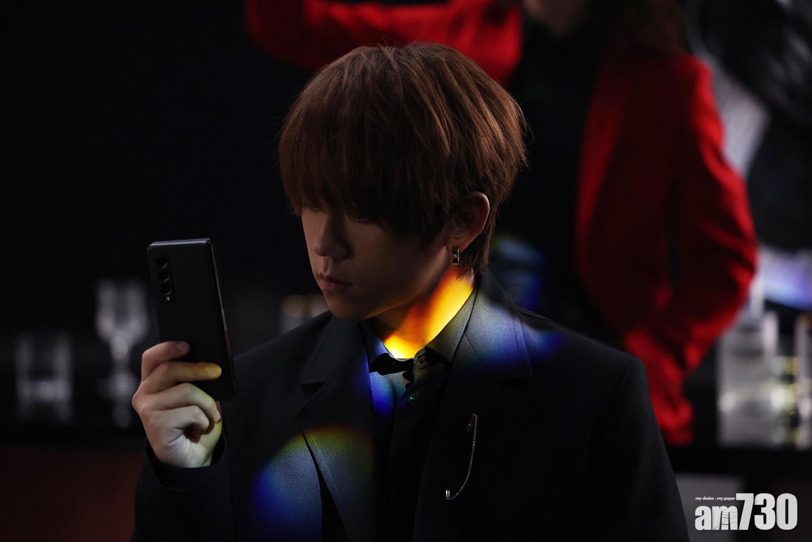 追求多功能、喜歡手機當平板電腦使用的隊長楊樂文(Lokman)和副隊長江𤒹生(AK)試用過Galaxy Z Fold3 5G摺機後愛不釋手,是次拍攝聯同鍾情大畫面的姜濤、陳卓賢(Ian)、王智德(Alton)及邱士縉(Stanley)以黑色為主調的西裝造型亮相。難得合體的MIRROR亦趁休息期間,運用超大屏幕玩手遊,與兄弟即時battle,整個錄影廠充滿歡樂氣氛。
