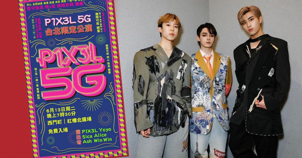 P1X3L成員葉振弘(Marco)早前在IG限時動態分享一張宣傳海報,內容寫住「P1X3L 5G 台北限定公演」,日期為下月13日,晚上7時30分在台北西門町的紅樓北廣場。至於5G指的是5位女仔,包括︰葛綽瑤(Yoyo)、何洛瑤(Sica)、許寶恆(Alice)、(鍾卓穎)Ash及楊安妮(Win Win)。