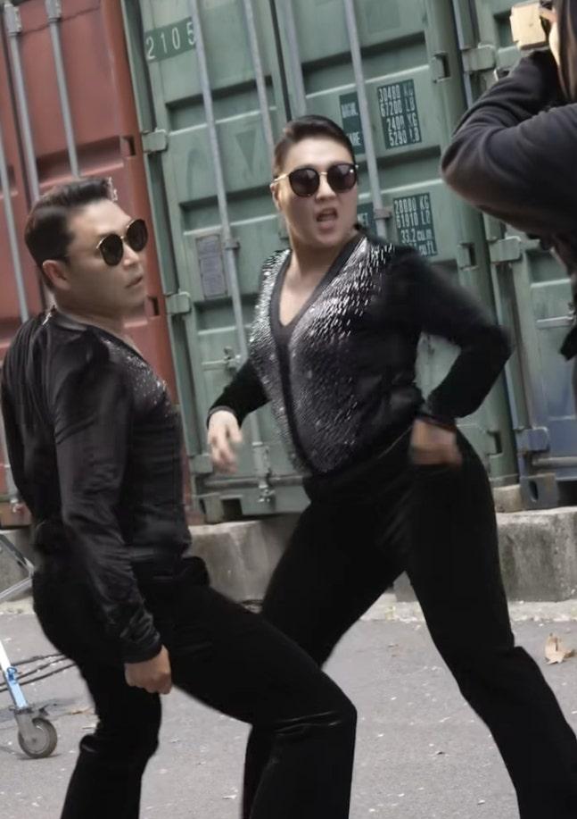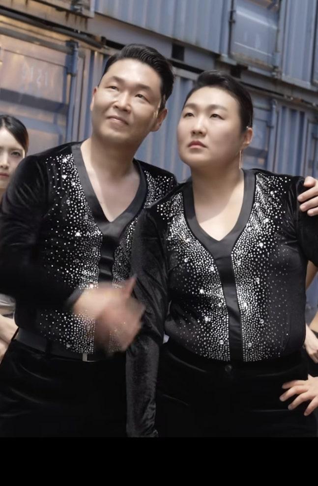 韓國歌手Psy,與人氣搞笑女藝人李秀智,近日在社交平台上載兩人合作拍攝MV的花絮,扮起Psy的李秀智,兩人容貌身材的相似度,達90%。在影片中,李秀智著上Psy的招牌社交舞衣,梳著相同的all back髮型,當Psy行近李秀智時,也驚訝地說:「我以為是我呢!」
