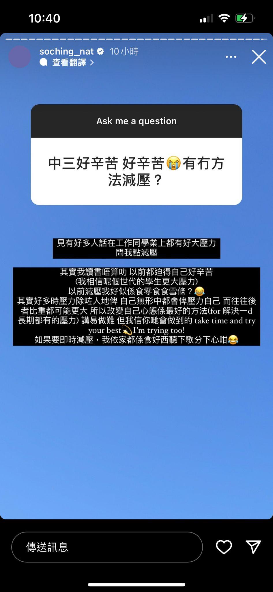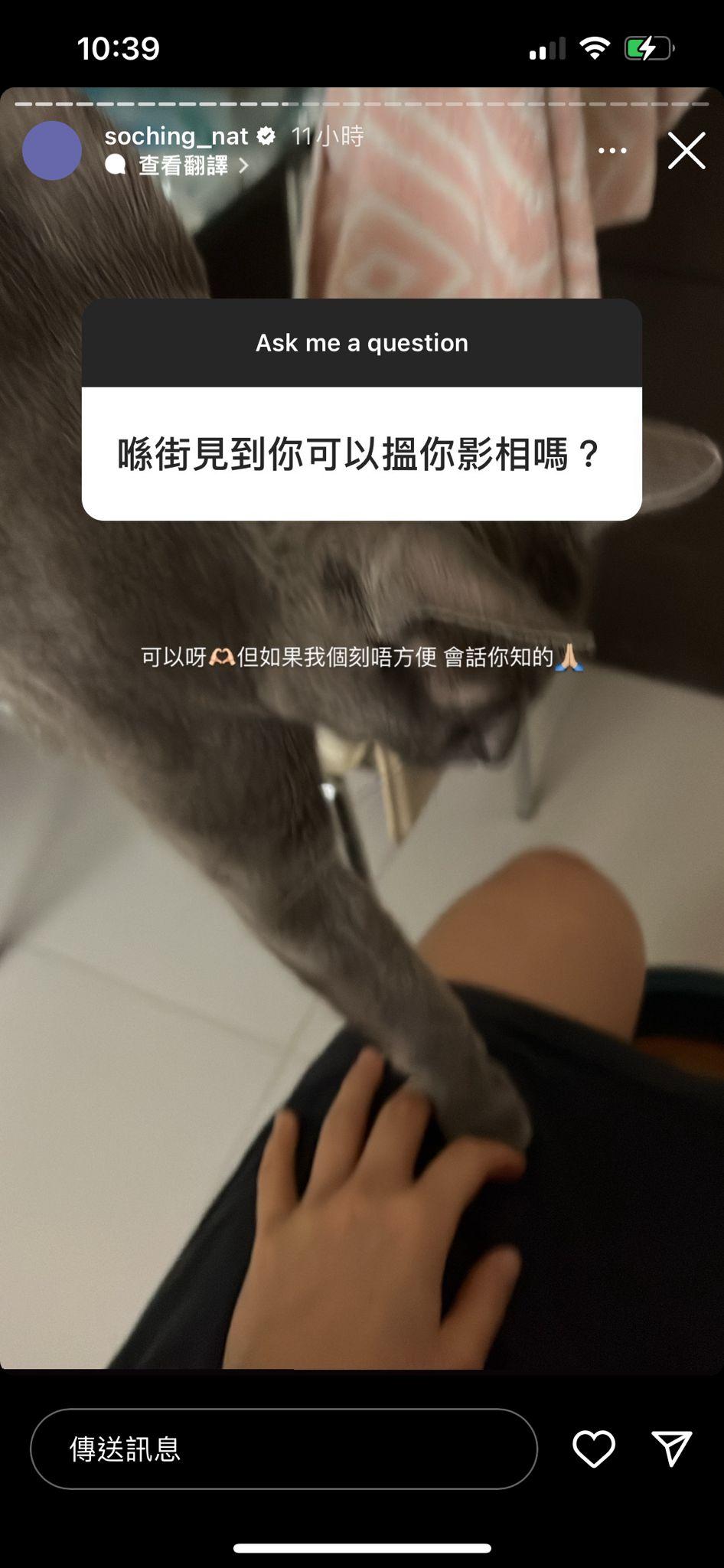 有網民問到阿Mo的情況,她表示不方便代對方回答,但盼大家繼續為阿Mo集氣,及可以留意每周六的代禱信。不過,So Ching亦有提及阿Mo很掛念他們一同飼養的愛貓,他亦每天都好努力。