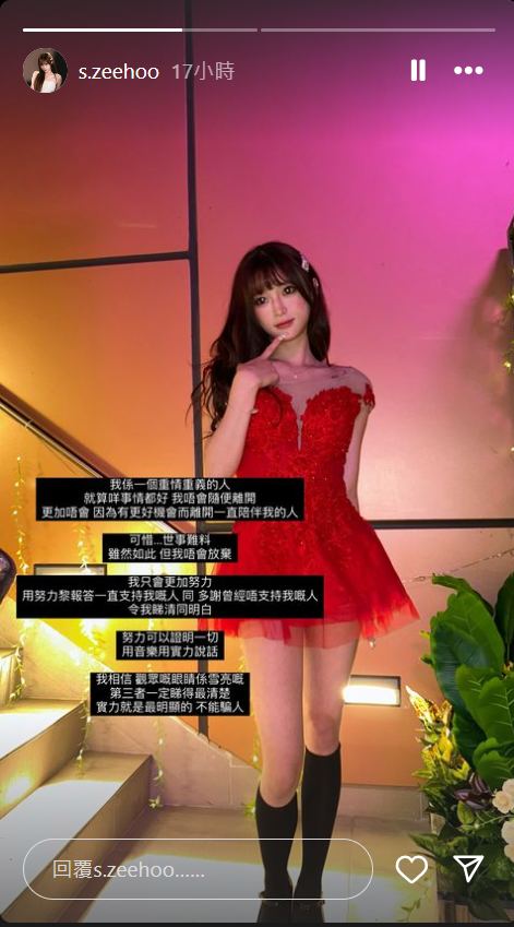 已離團的成員Sze Ching就表示自己是一個重情重義的人,不會隨便離開,亦不會因為更好的機會而離開一直陪伴自己的人,之後她以一句「可惜…世事難料」去暗示自己是迫於無奈作出決定。她又謂︰「努力可以證明一切,用音樂用實力說話,我相信觀眾嘅眼睛係雪亮嘅,第三者一定睇得最清楚,實力就是最明顯的,不能騙人。」